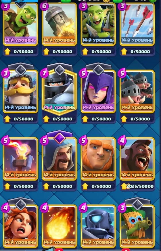 ✨Big Discount✨✨️✨7 evo✨️✨main✨️✨ 14lvl x 42, 13lvl - 25, 15lvl x 2✨️✨15 lvl King ✨️✨auto issue✨️✨, arena 24, 54 level, trophies 9038, cards 120, legendary cards 20, Yes
