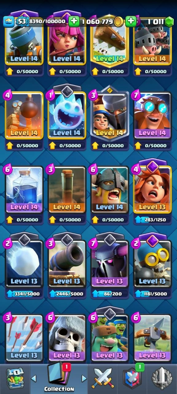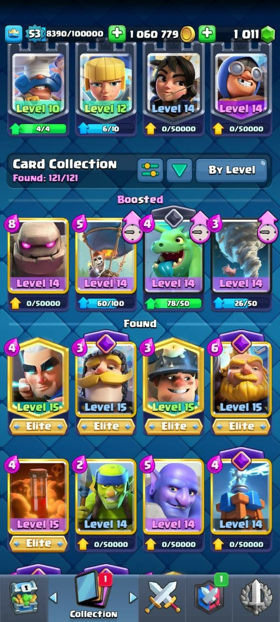 ✨Big Discount✨✨ ✨ ✨ ✨ + (4/6+2/6+) + ✨ ✨ ON + ON ✨ ✨ 84 EM + 1M GOLD + 9 BOOKS ✨ ✨, arena 23, 53 level, trophies 9058, cards 121, legendary cards 21, No
