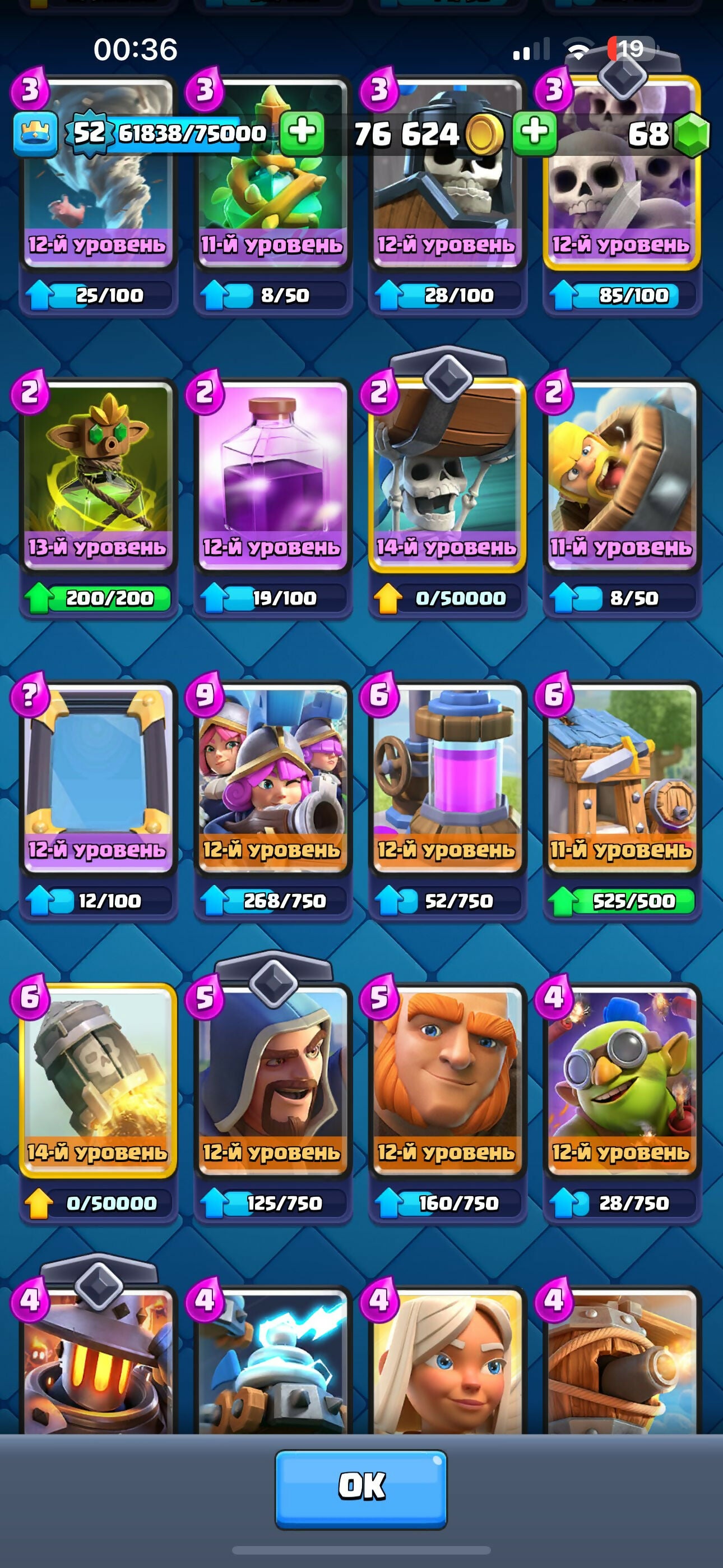 🏆 10000 🏆⭐️4-Evolutions⭐️All Cards💎52 LVL😍Leveling 14-15⭐️, arena 24, 31 level, trophies 10400, cards 121, No