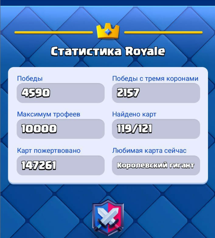 I rarely update information, see the current one here: https://royaleapi.com/player/CR8R8L9