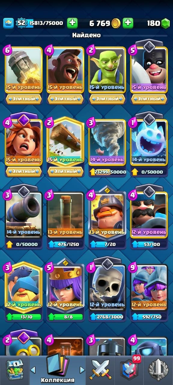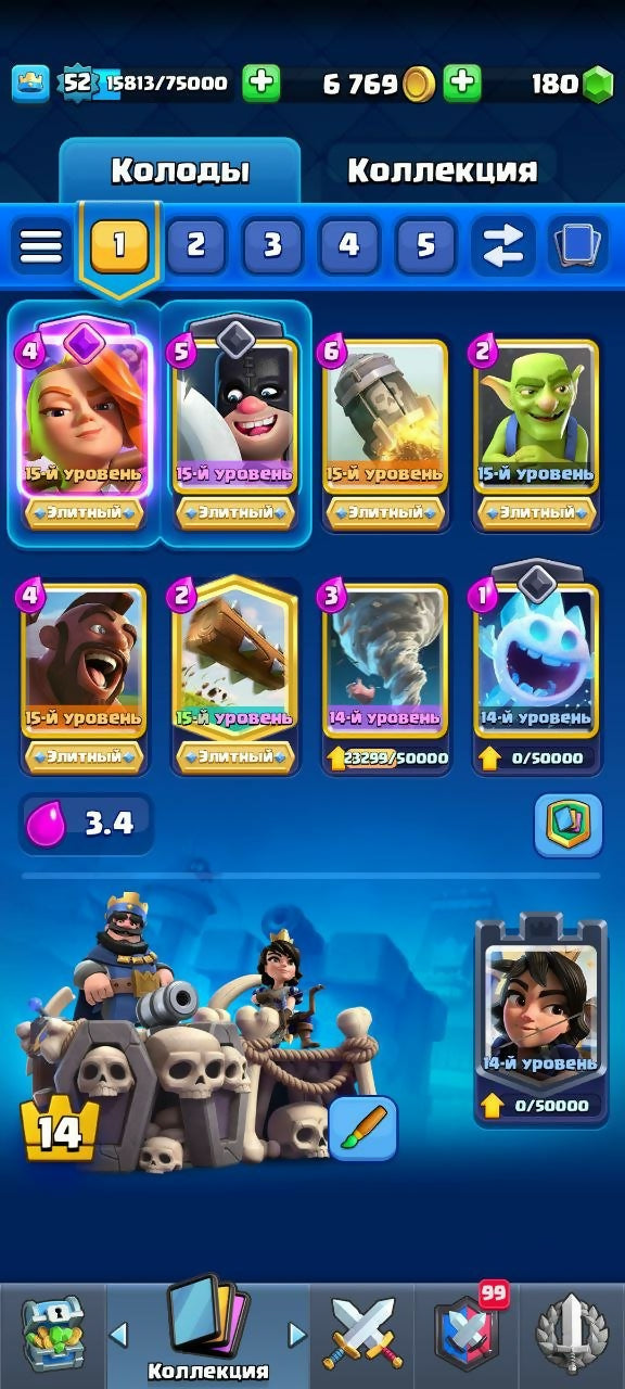 ✨Big Discount✨✨ ASTOVIDATU MAIL ✨ ✨ DECK 14-15 LVL 34 EMOJI ✨ ✨ 3 SKINS TOWER ✨ ✨ 6 ELITE CARDS, arena 24, level 52, trophies 9503, cards 119, No