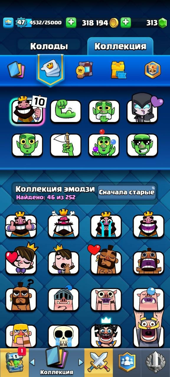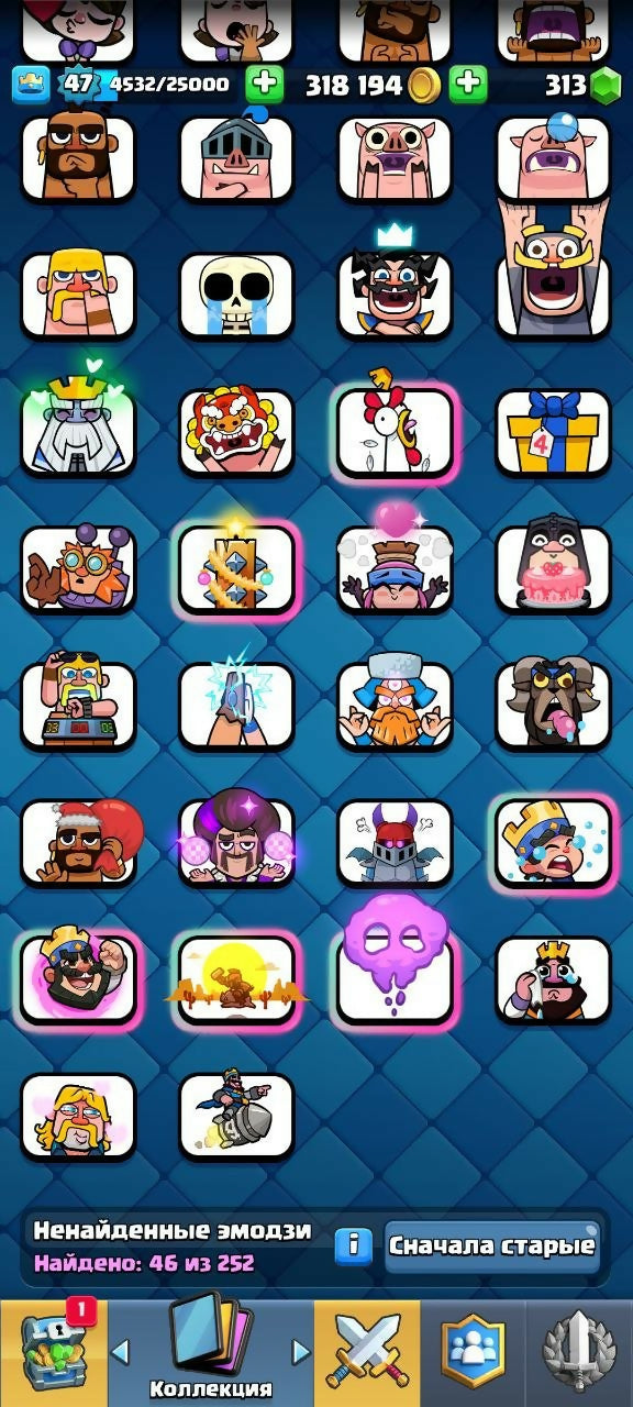 ✨Big Discount✨✨ ASTOVIDATU MAIL ✨ ✨ DECK 14-15 LVL 46 EMOJI ✨ ✨ 5 SKINS TOWER ✨ 5 years of playing ✨ arena 23, 47 level, trophies 9000, cards 118, No