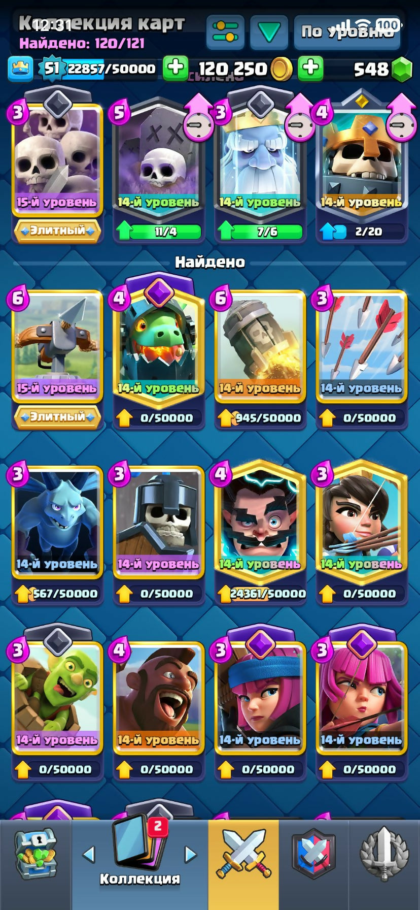 ✨Big Discount✨✨14 lvl 18 cards✨✨✨9000✨✨✨51 LVL✨✨120/121✨✨5 EVOLUTIONS✨✨71 emotions✨✨✨more details ✨✨✨✨5 towers✨✨, arena 23, 51 level, trophies 9000, cards 120, No