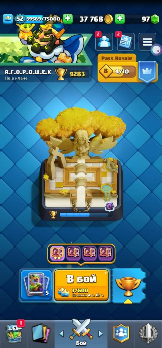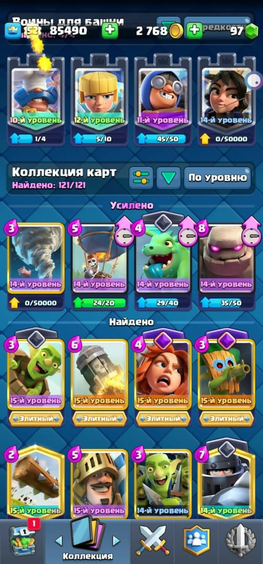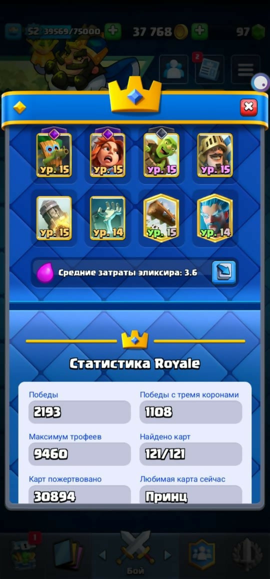 ✨Big Discount✨✨9.283 CUP✨3-RP✨AUTO✨10 EVOLUTION✨️6-15 lvl,14-14 lvl✨43 EMODZI✨6 TOWERS✨✨97 GEMS✨ ✨PHOTOS✨, arena 23, 52 level, trophies 9283, cards 121, legendary cards 21, Yes