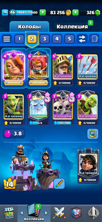 ✨Big Discount✨✨Account with BP tower, emojsnrncesses Tshsh, 9 EVO✨, arena 25, level 46, trophies 10000, cards 121, legendary cards 21, No