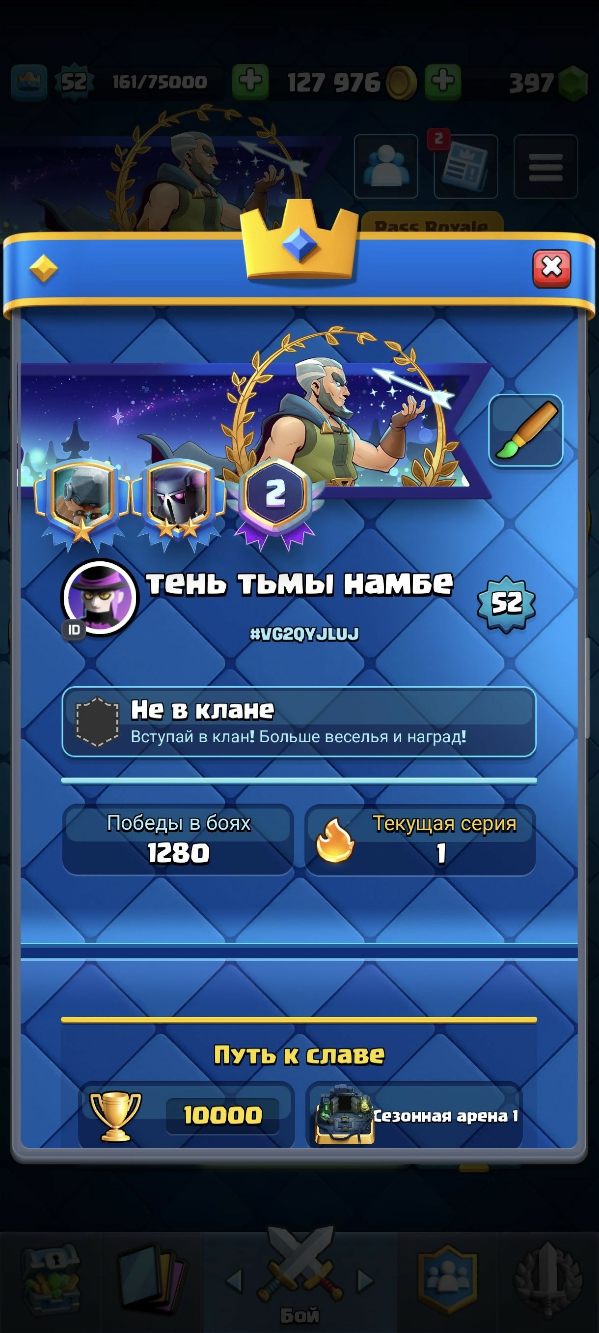 ✨Big Discount✨✨Old Ak ✨Deck 6-15 lvl 2-14 lvl lots of emojie & lots of Evolutions✨ ️, arena 25, level 52, trophies 10000, cards 120, legendary cards 21, No