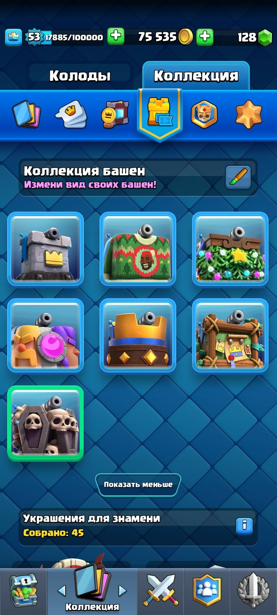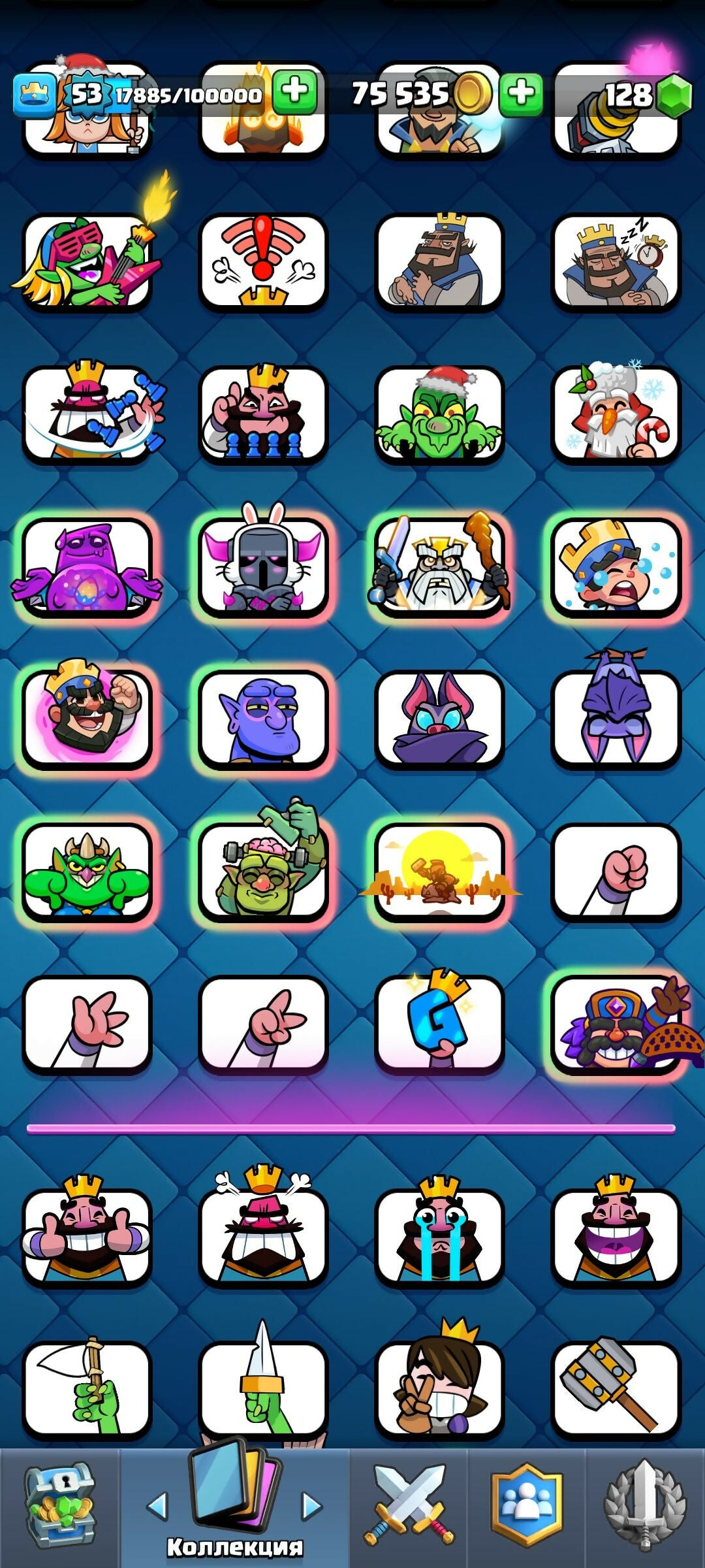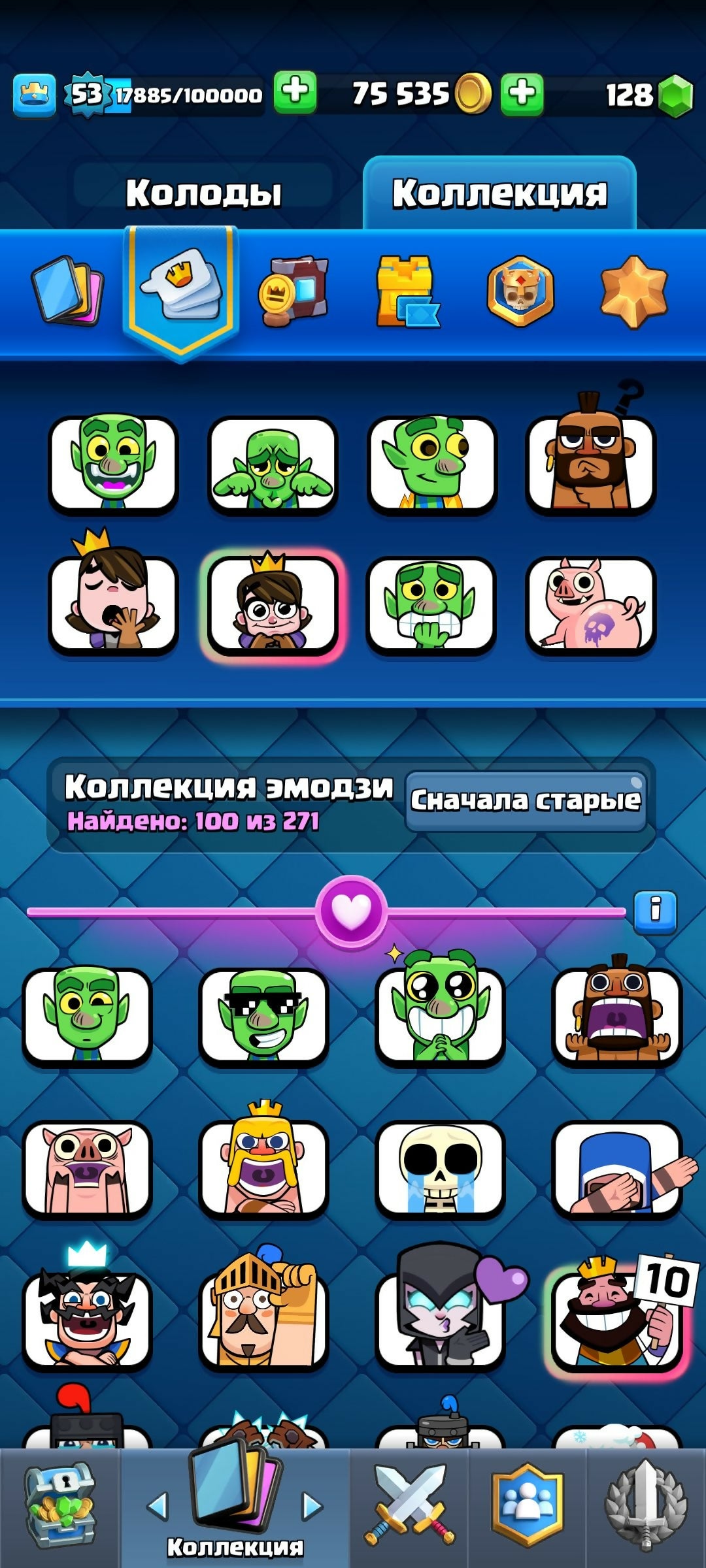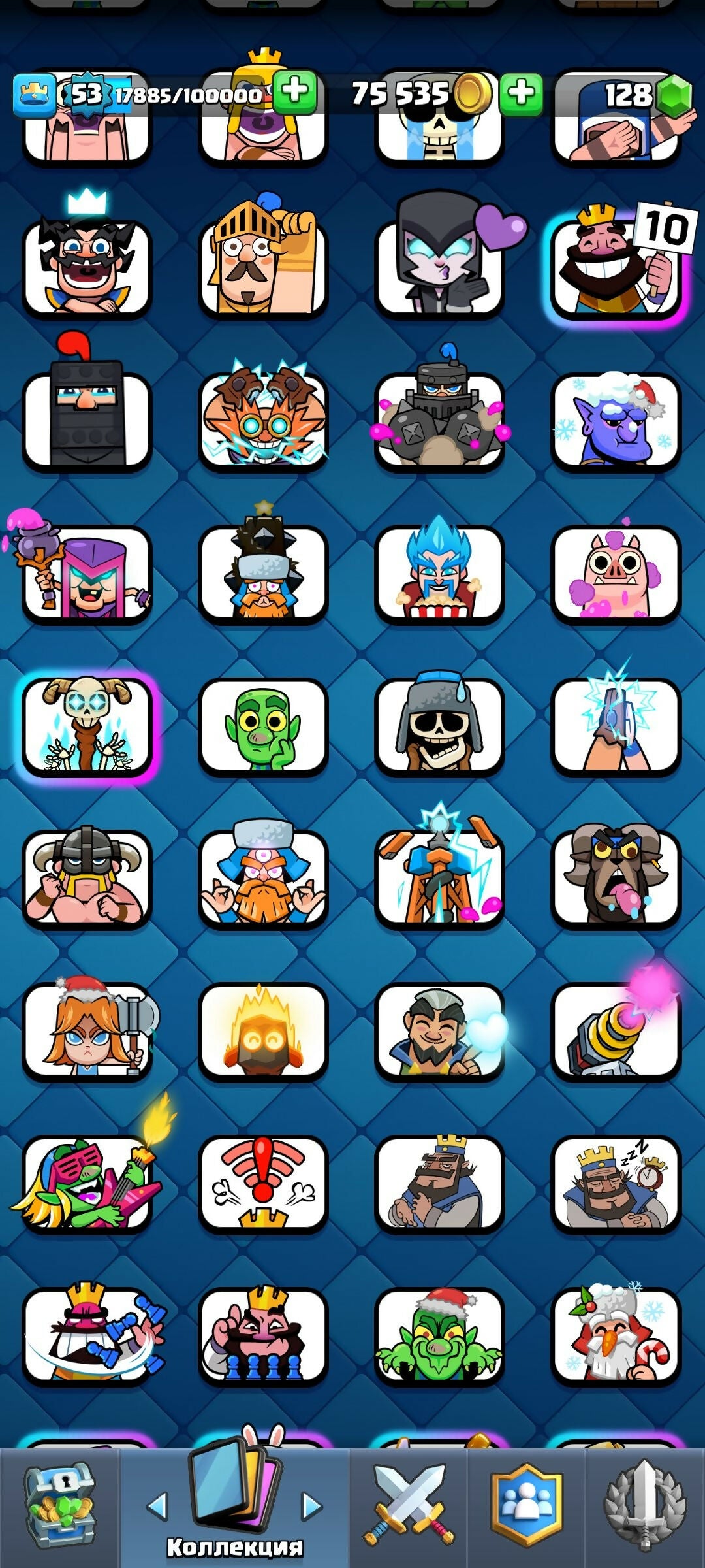 β¨Big Discountβ¨10000 trophies β¨ Pin Goblin's Sadness β¨ 12 Evolutions β¨ arena 24, level 53, trophies 10000, 119 cards, legendary cards 20, Yes