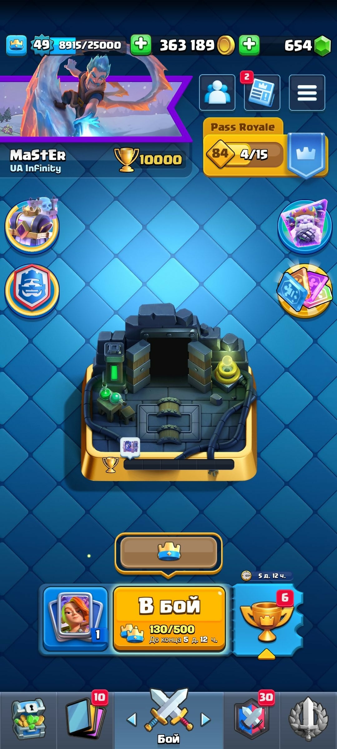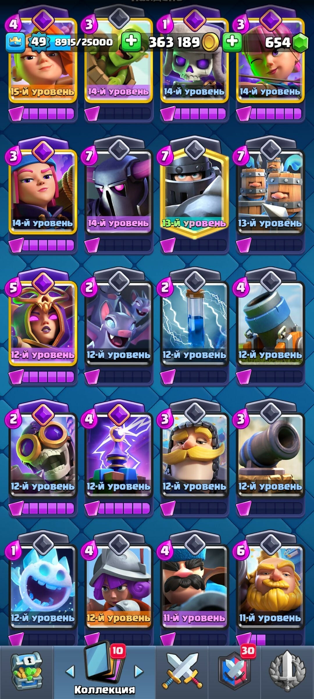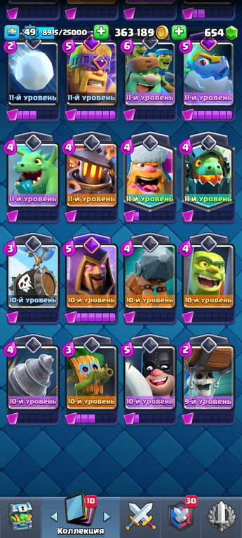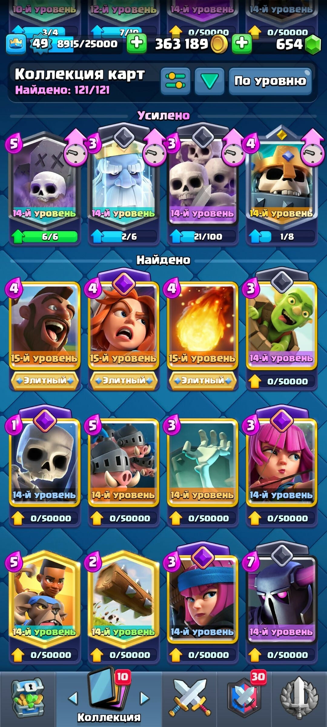 ✨Big Discount✨AUTO-ISSUE✨ACC 10K, GOOD LEVELING, 10 LEVELS, 54 + emoji, 10 TOWER SKINS✨, arena 25, level 49, trophies 10000, cards 121, legendary cards 21, Yes