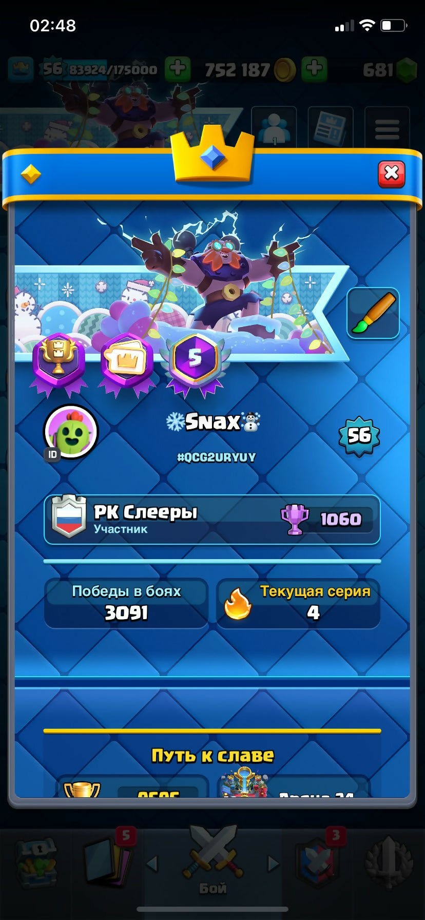 ✨Big Discount✨Clash Royale + BS 9k Cups account, arena 24, 56 level, trophies 10000, cards 121, No