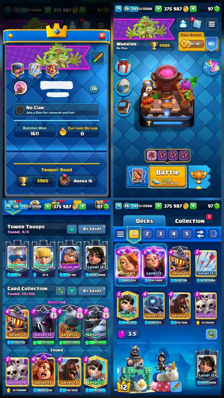 🔰 LEVEL-36 ACCOUNT 🧊 👑 4 EVOLVED CARDS ⭐ | 🏅 1 MAXED CARD 🎖️ 5905 CUPS | ⚡ KING TOWER 12 | 🎯 ARENA 16 📝 FREE NAME CHANGE | 🔥 LOW PRICE | 📦 FAST DELIVERY ✔️