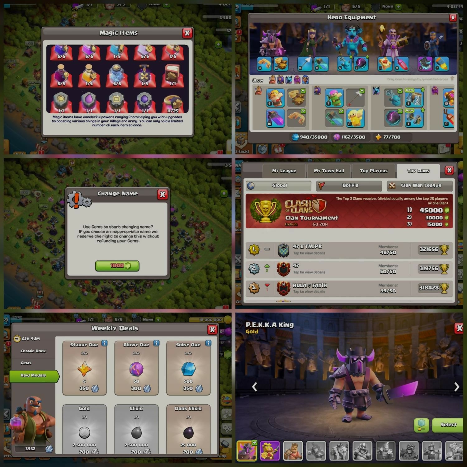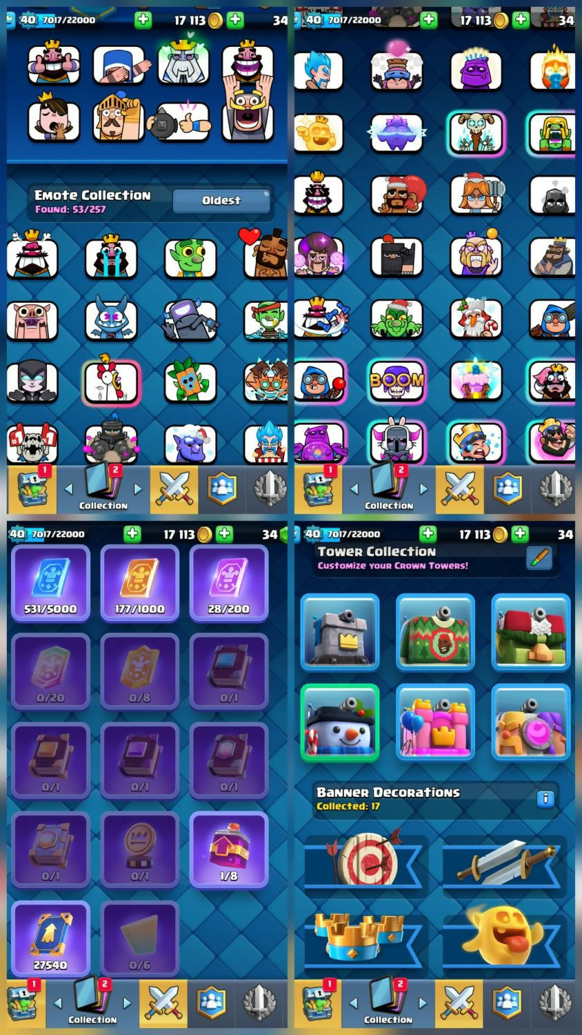 🔷 BO LOCAL DEAL🎮 COC + CR MEGA COMBO😎 53 EMOTES | 🎯 ARENA-18🗡️ KING TOWER XIII | 🌟 XP: 40🥇 6717 CUPS | 🏯 TH13 ACCOUNT👑 HERO LEVELS: 44/51/36/26/9