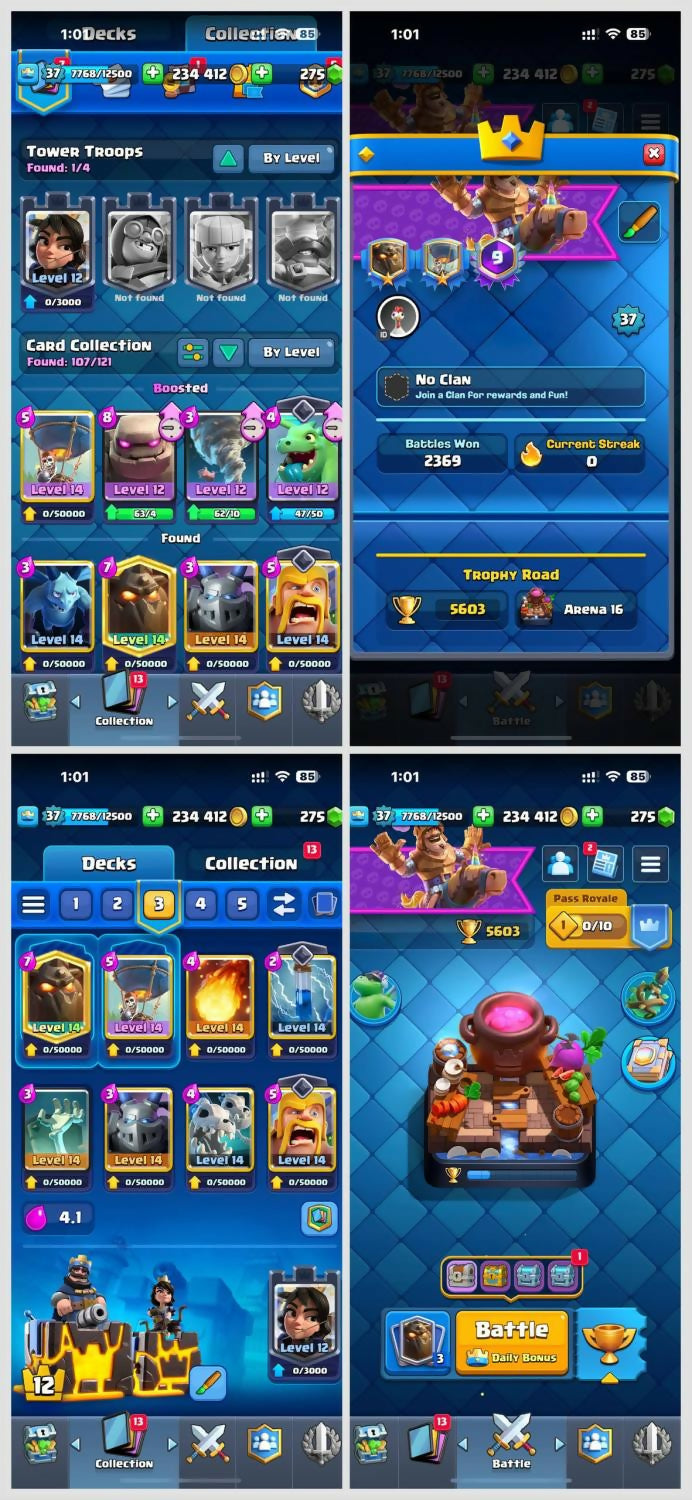 🚩 LEV-37 GAME ACC 🧿🔥 10 MAX CARDS ⭐ | 🎉 9Y OLD ACCOUNT🏆 5603 TROPHIES | ⚡ KT-12 | 🔮 ARENA-16✍️ FREE RENAME | 💰 BUDGET PRICE | 🚀 QUICK DELIVERY ✔️