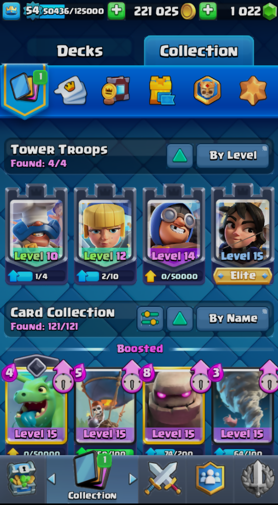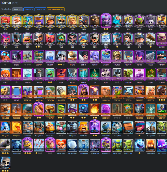 【11.150 Trophy ⭐️| KT 15 | 121 Card(Max) | 54 Level | 8 EVO | 5 Elite | 116 Emote | 1000 GEM | Check all details from in the description!? | ∞ Warranty ⚡】