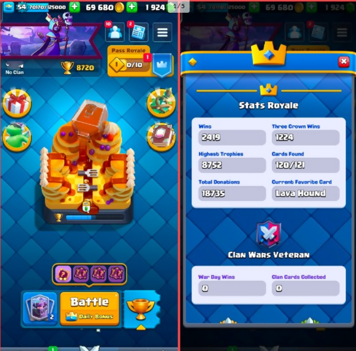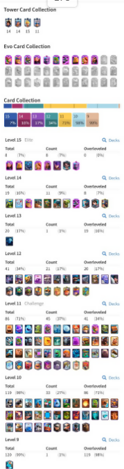 {11 Max Cards Level 14 + 8 Elites Level 15} 10 Evolution, KT 14 : Level 54 ? | Free Name Change ?, 8720 Trophies ? | 120 Cards Unlock ? | CH335