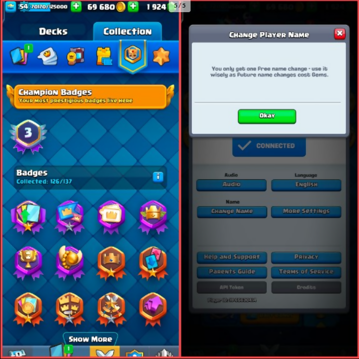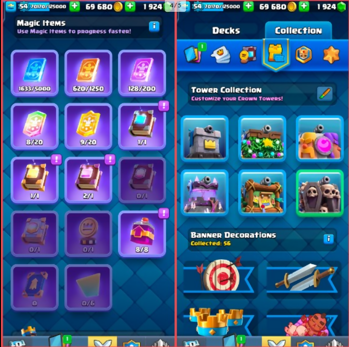 {11 Max Cards Level 14 + 8 Elites Level 15} 10 Evolution, KT 14 : Level 54 π | Free Name Change π, 8720 Trophies π