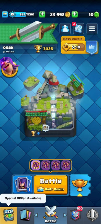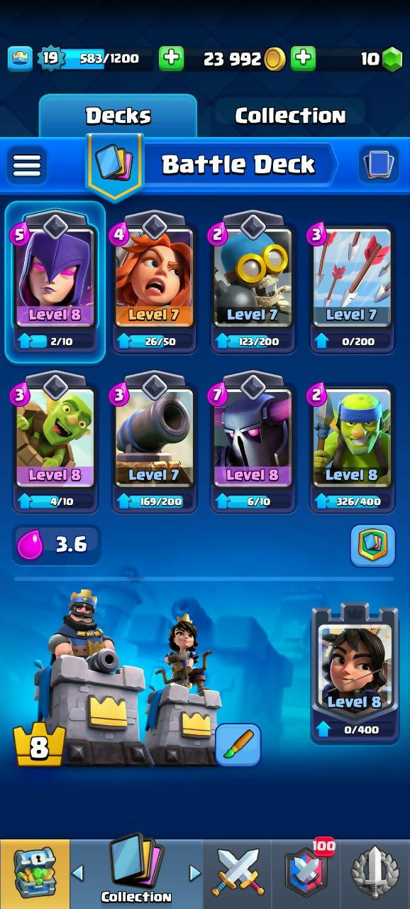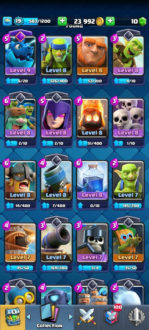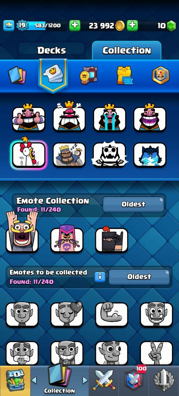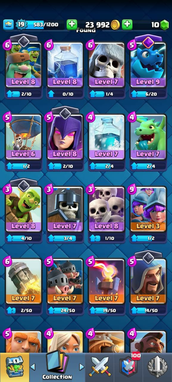 3026 TROPHIES (CR) | LEVEL 19 | 56/120 CARDS | 0 LEGENDARIES | EVO ELECTRO DRAGON | 11 EMOJIS | 23K COINS