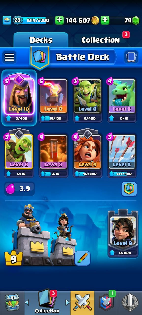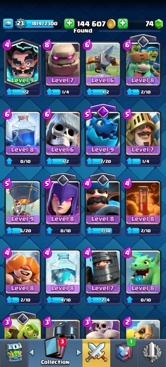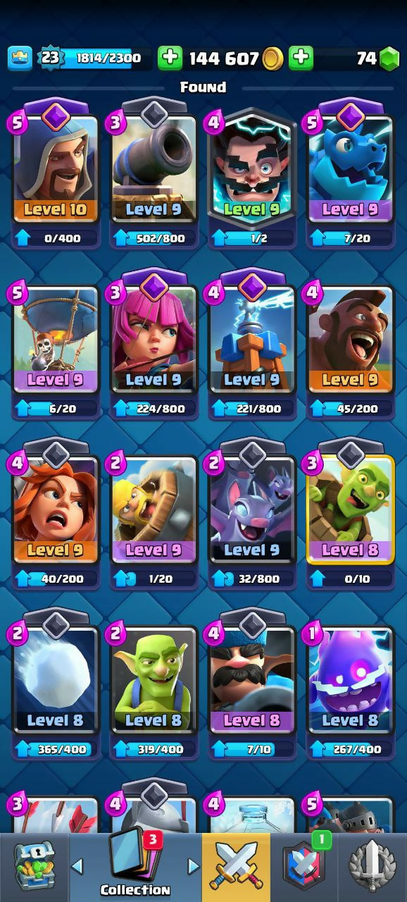 3418 TROPHIES (CR) | LEVEL 23 | 72/120 CARDS | 2 LEGENDARIES | 4 EVO | BS 7K CUPS | 9 EMOJIS | 144K COINS