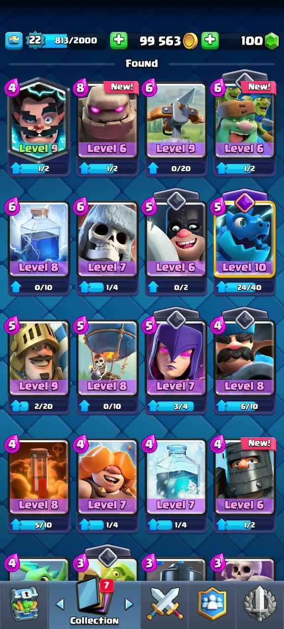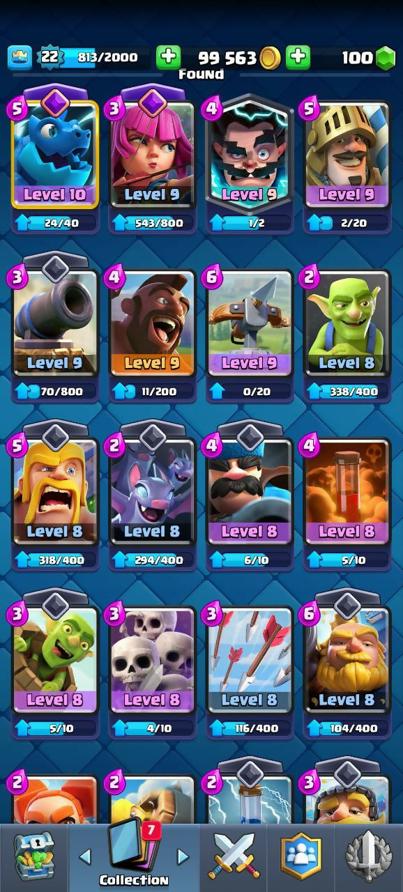 3520 TROPHIES (CR) | LEVEL 22 | 71/120 CARDS | 1 LEGENDARY | 2 EVO | 11 EMOJIS | 95K COINS