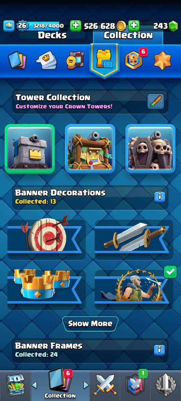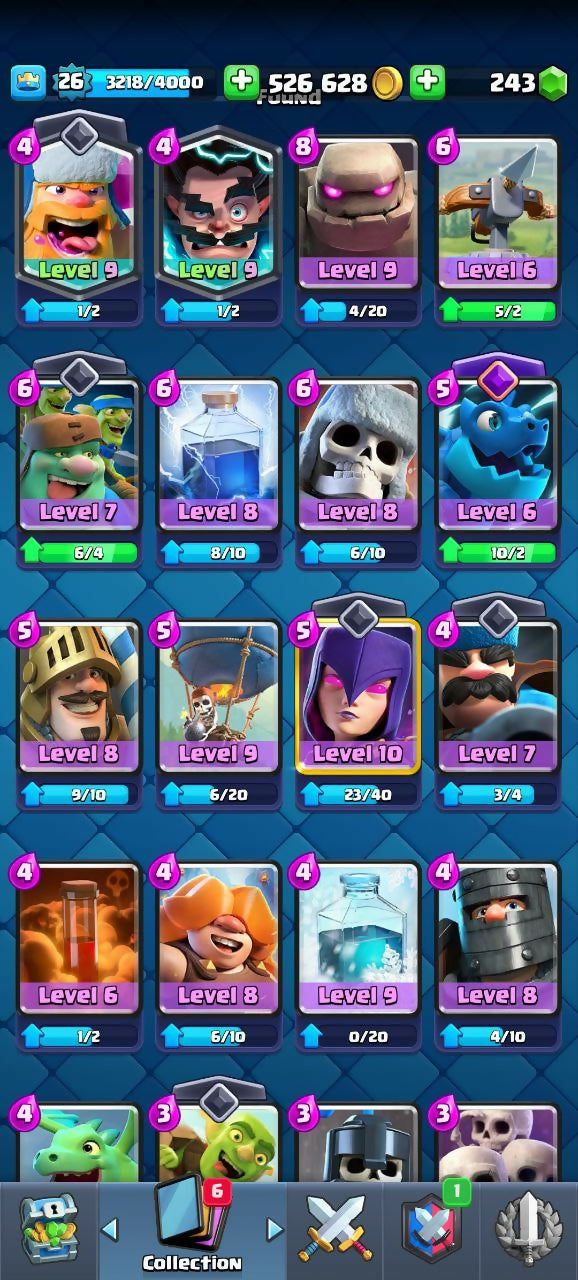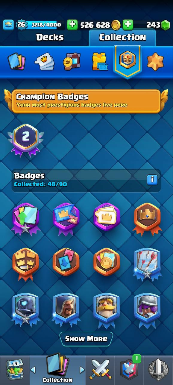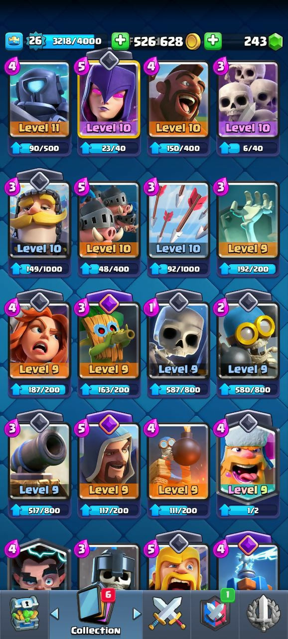 3558 TROPHIES (CR) | LEVEL 26 | 72/120 CARDS | 2 LEGENDARIES | 5 EVO | 16 EMOJIS | 526K COINS