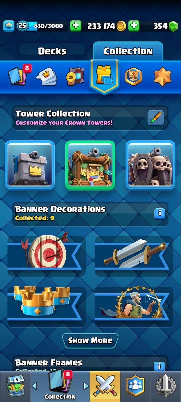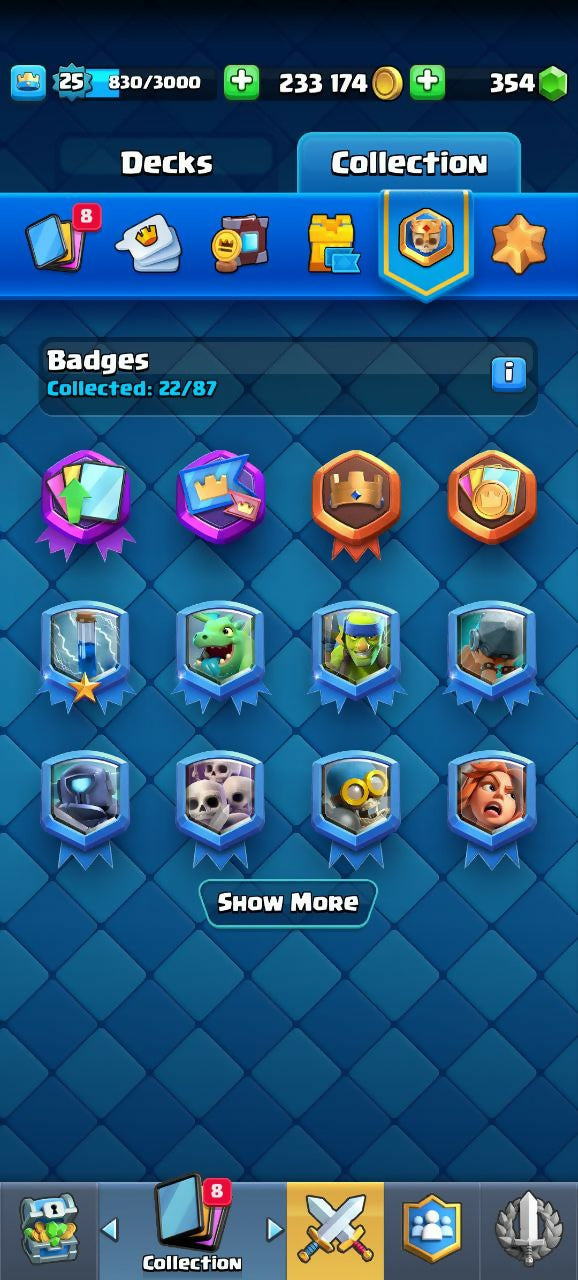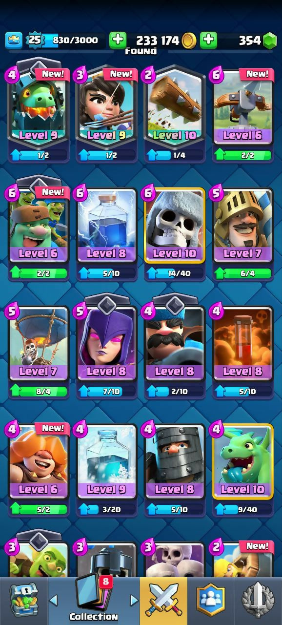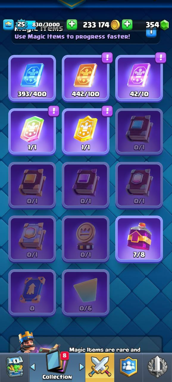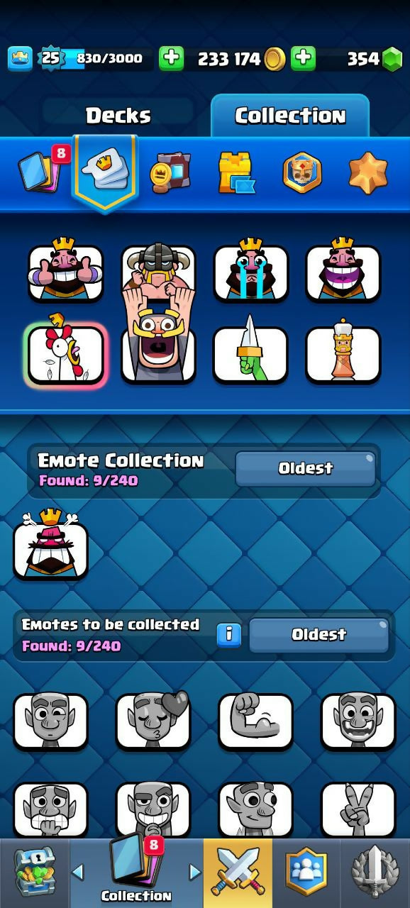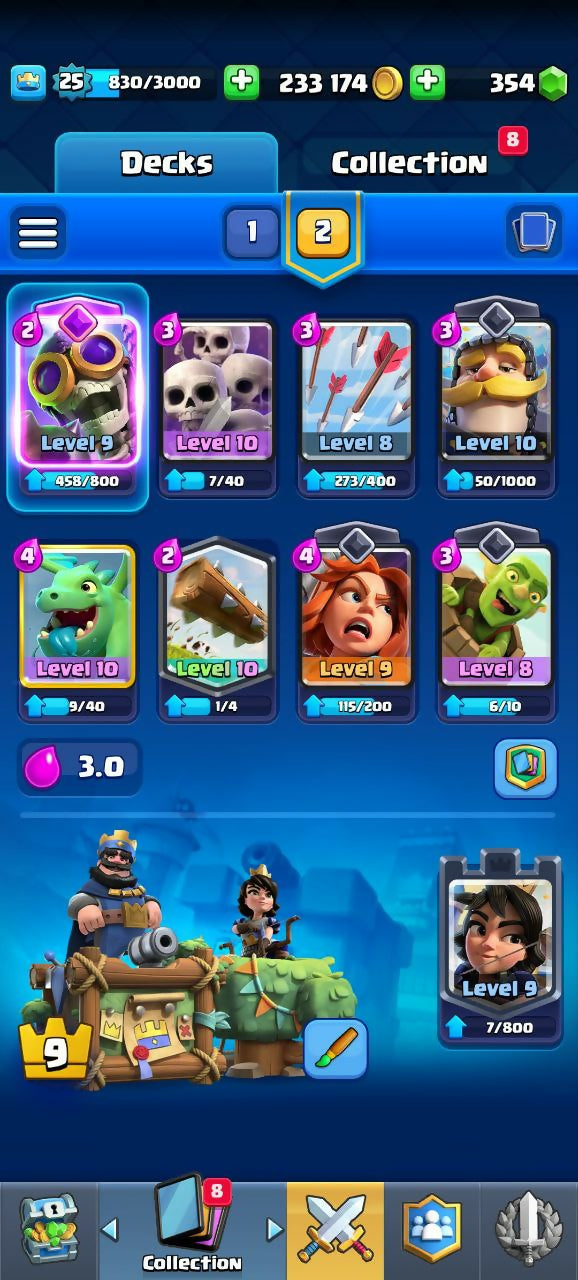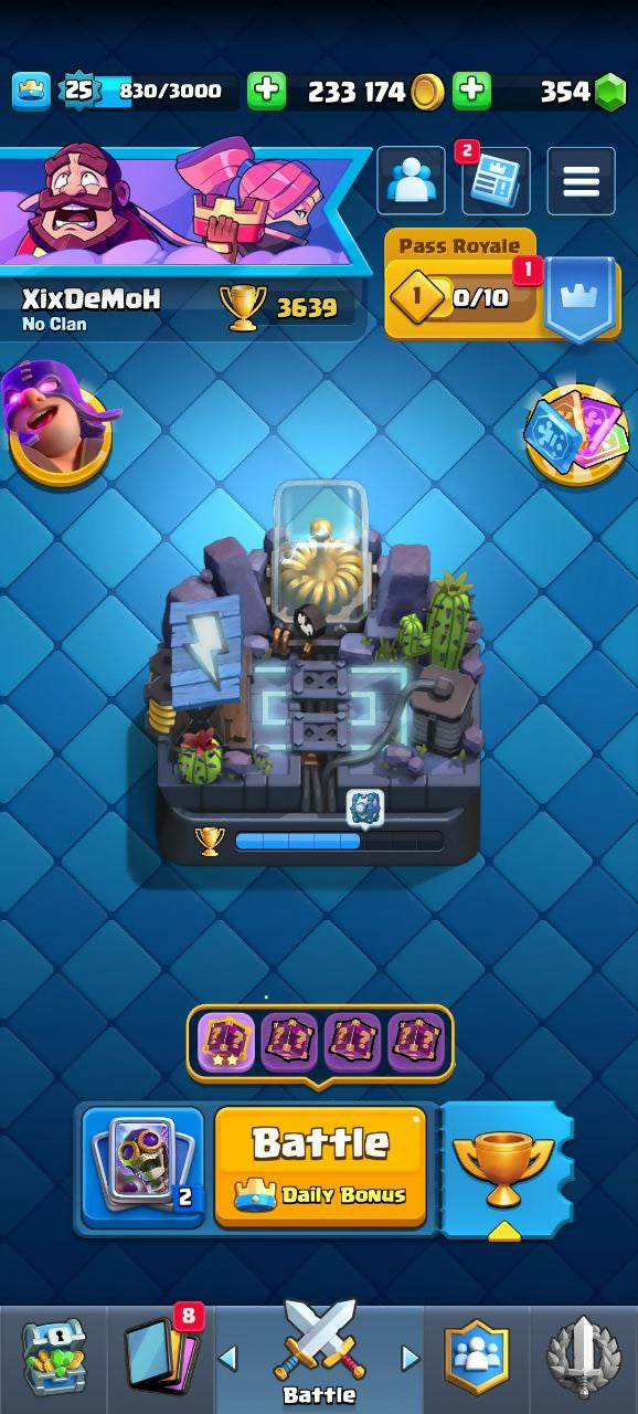 3639 TROPHIES (CR) | LEVEL 25 | 71/120 CARDS | 3 LEGENDARIES | EVO DEMOLITIONIST | 354 CRYSTALS | 9 EMOJIS