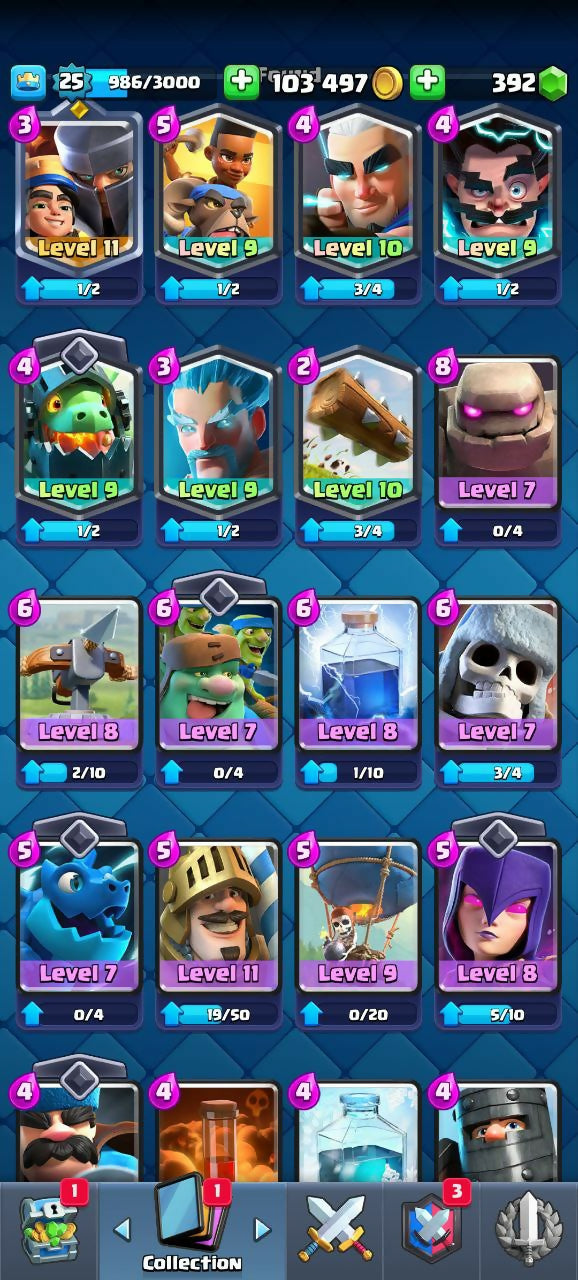 4085 TROPHIES (CR) | LEVEL 25 | 78/120 CARDS | 6 LEGENDARIES | EVO DEMOLITIONIST | 705 CRYSTALS | 8 EMOJIS