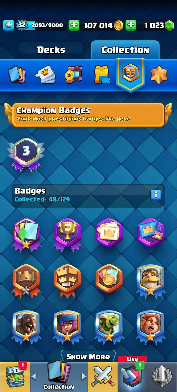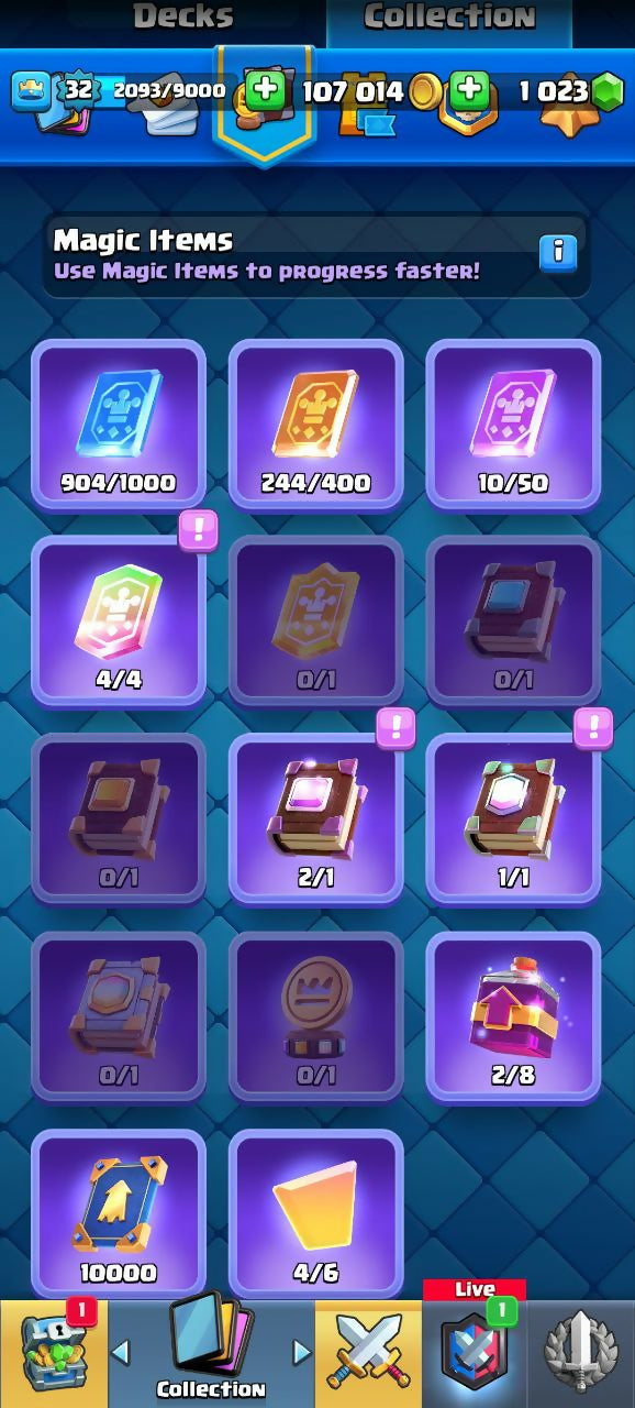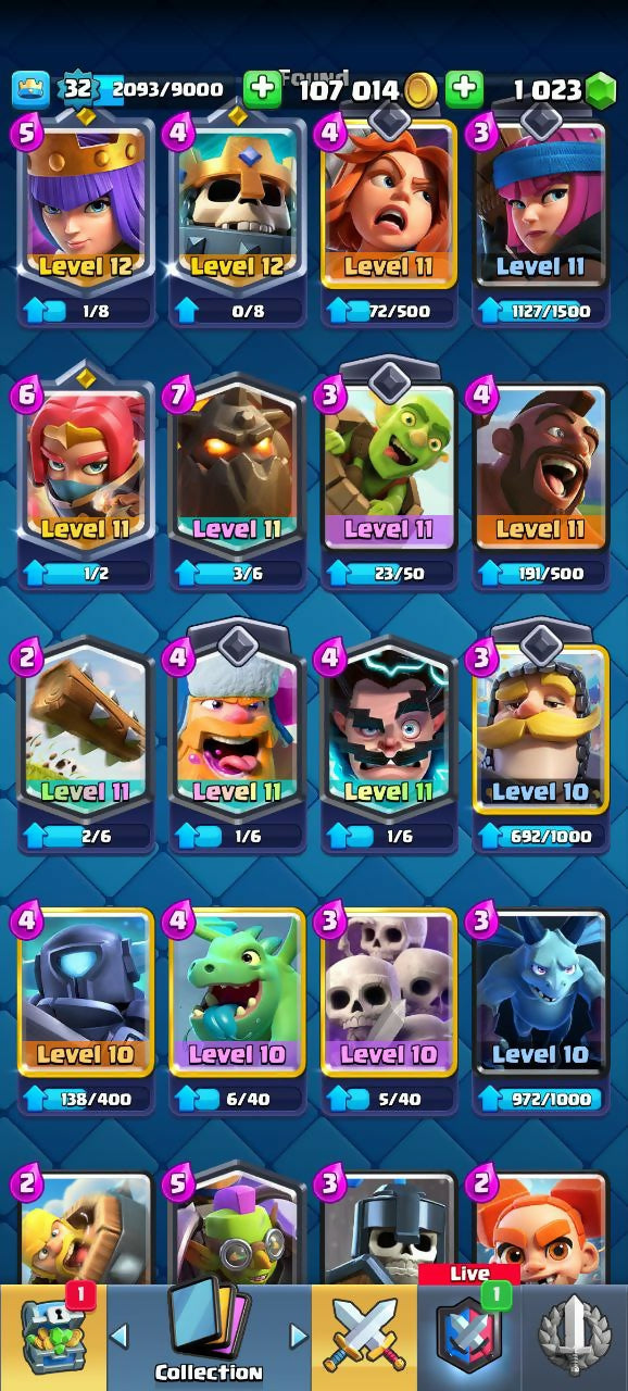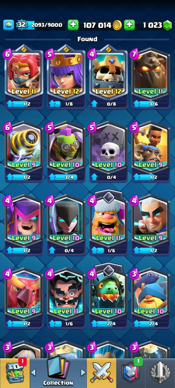 6061 TROPHIES (CR) | LEVEL 32 | 114/120 CARDS | 20 LEGENDARIES | 2 EVO | 1023 GEMS | 18 EMOTES