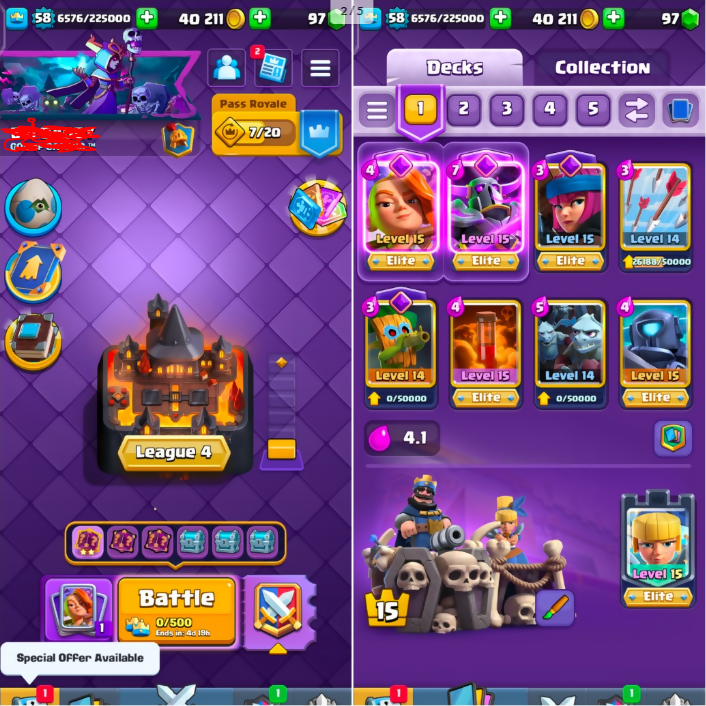 CHAMPION RANK ] PREMIUM➤KT 15➤XP 58➤59 MAX CARDS➤14 ELITE➤16 BIG EVO CARDS➤10000 TROPHY➤66 EMOTES➤5990 BATTLE WON➤107 BANNERS➤Instant Delivery
