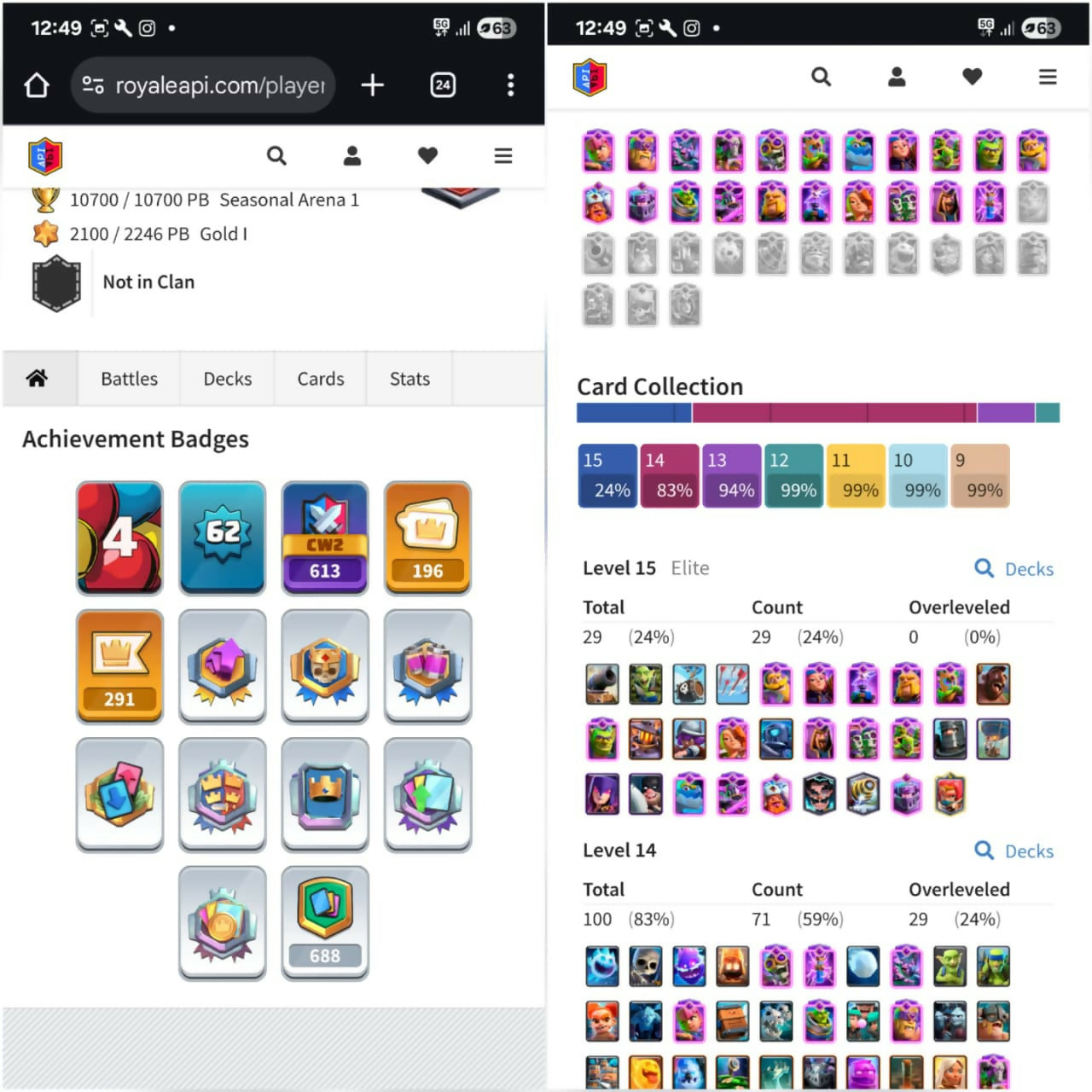 [Cheap Deal🎭] | Lvl 62 + KT 15 | 10,500+🏆 | 100 Max Cards {29 Elites} 20+ Evos | Name Changable | Stacked Banners & Decorations 🏅 ✅ Verified by TapIn Team • 💰 90-Day Replacement Warranty • 🔒 Safe & Secure Transfer