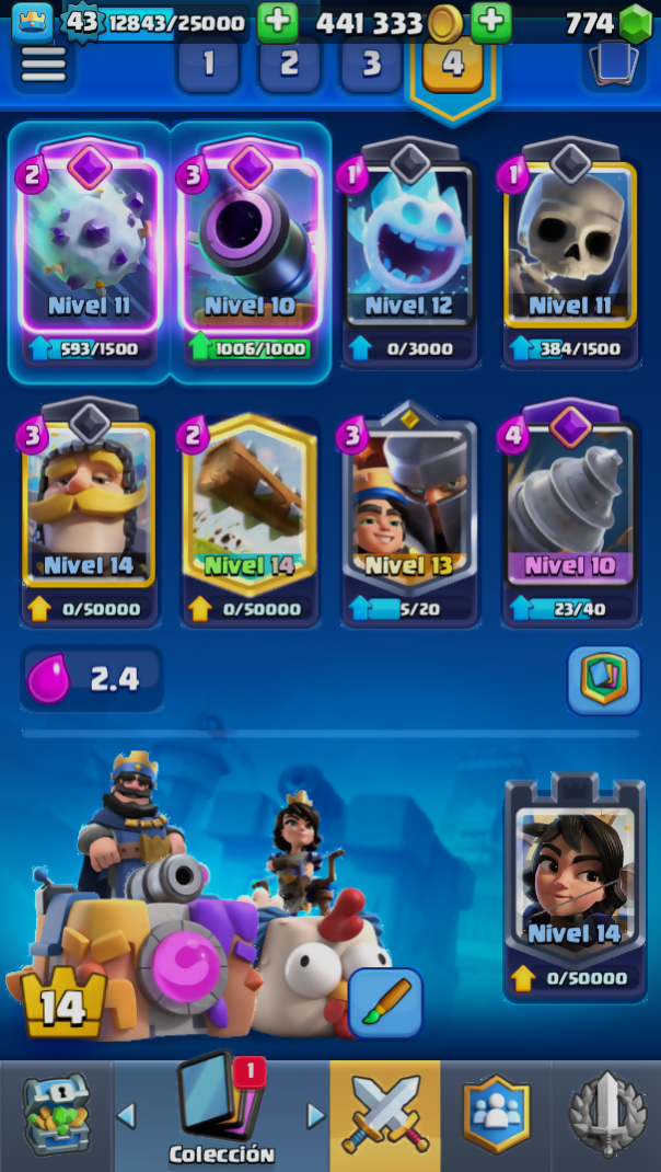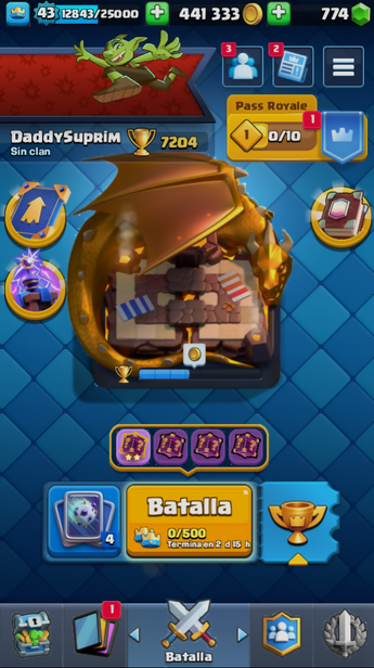 CR ✅ LEVEL 43⚡️ (KT14, 122 Cards l 1 Card Level 15 l 9 Cards Level 14 l 7204 Max Trophies)⚡️ 441333 Gold - 774 Gems