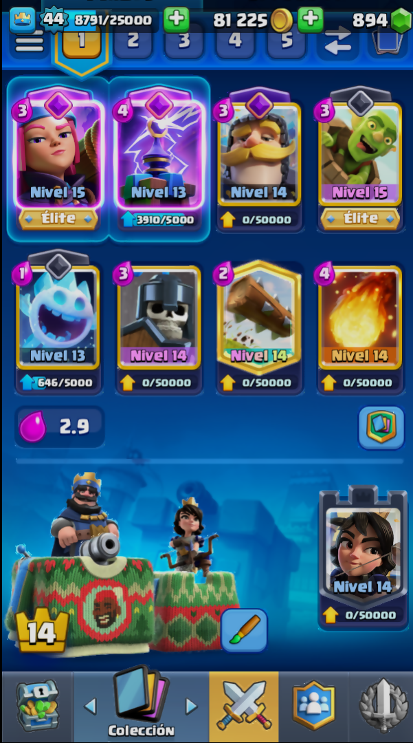 CR ✅ LEVEL 44⚡️ (KT14, 122 Cards l 2 Cards Level 15 l 6 Cards Level 14 l 7081 Max Trophies)⚡️ 81225 Gold - 894 Gems