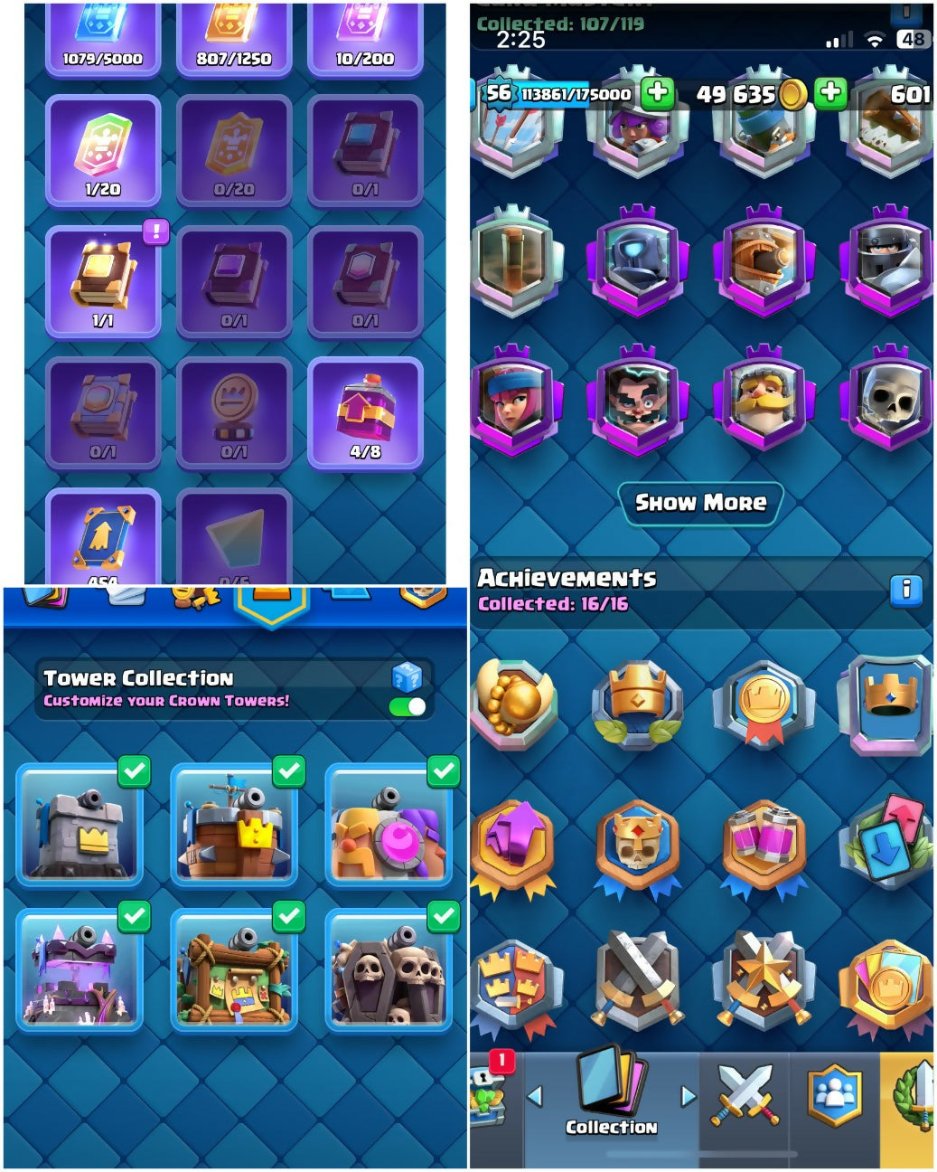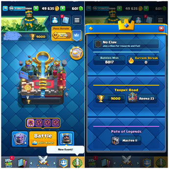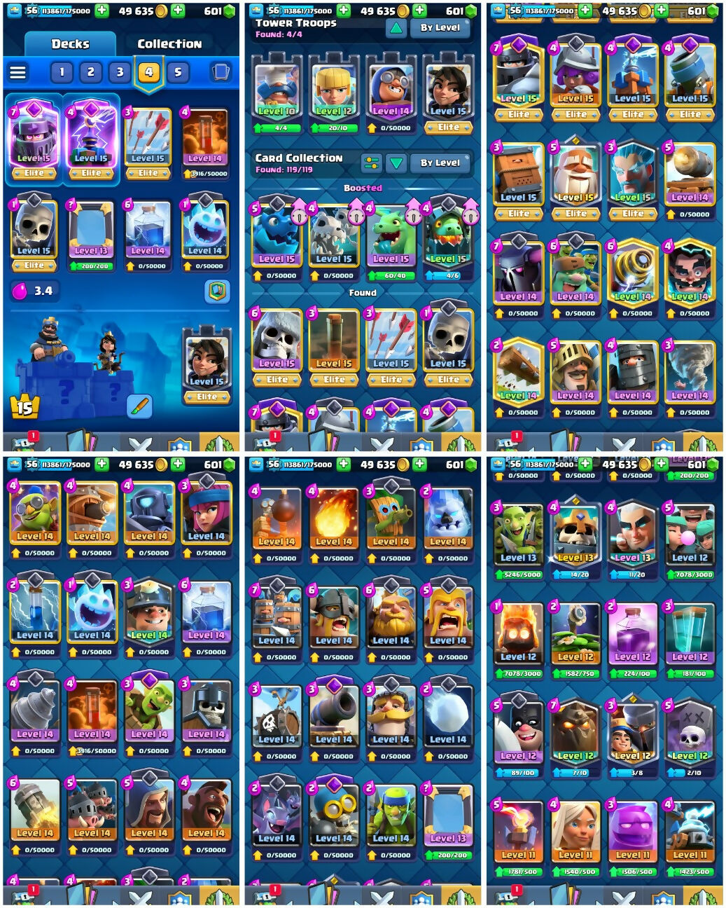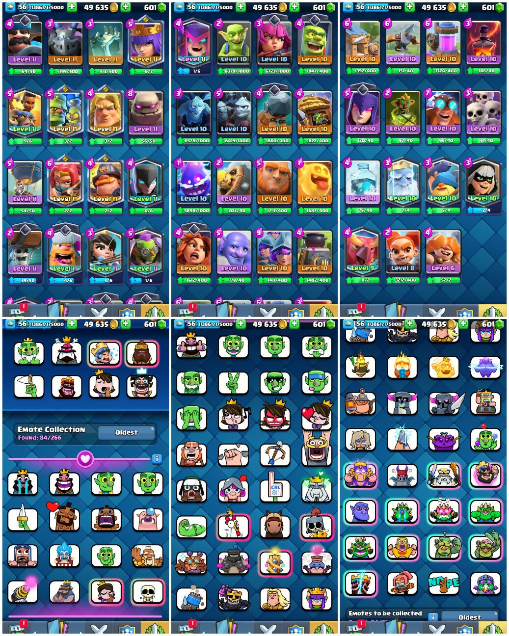 FULLY STACKED 56 MAX CARDS?LEVEL 56 ? 9000 TROPHIES?6 EVOLUTIONS??ARENA LVL 23 ? KT 15?OG 84 EMOTES ??12 ELITE CARDS??ANDROID & IOS?INSTANT DELIVE