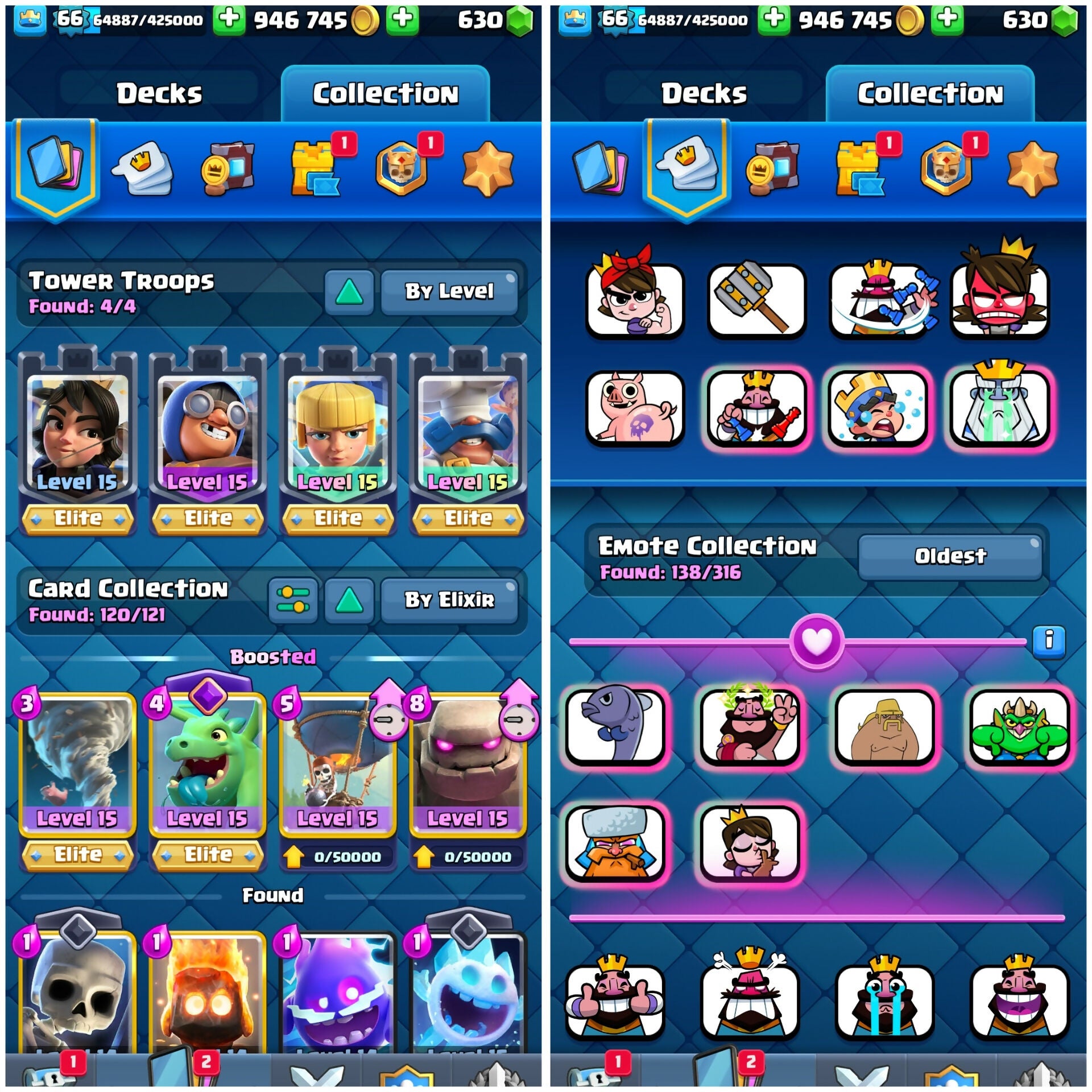 KT 15 | LVL 66 | 114 MAX CARDS | 57 ELITE CARDS | 19 EVO CARDS | 138 EMOTES | FEW RARE | ULTIMATE CHAMPION | TOP 262 RANKED