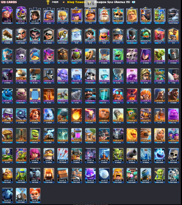 KT14 | ⚡ 2 Evolved Cards ⚡ 7409 Trophies ⚡ 120 Cards ⚡ 34 Max Card (LV14) ⚡ Full Access ⚡ Fast Delivery and Safe
