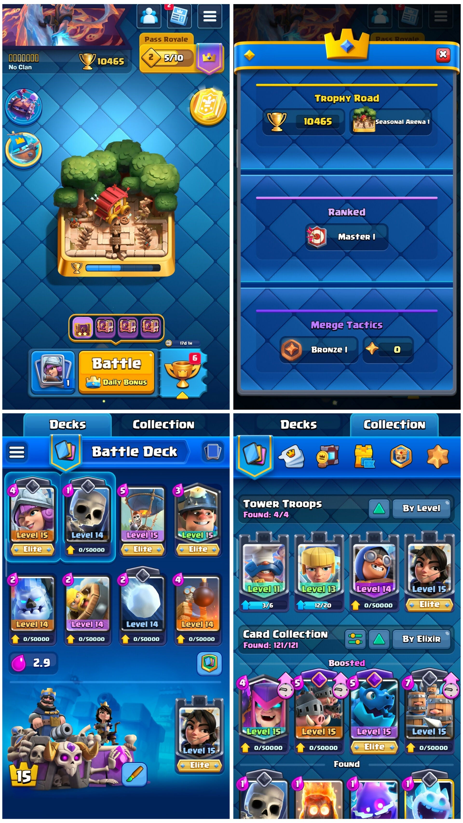 KT15 | Level 64 | Trophies 10465 | 8 Years Old | 115 Cards Max | 45 Elite Cards | 17 Evolution Cards | 4m Gold | Instant Delivery