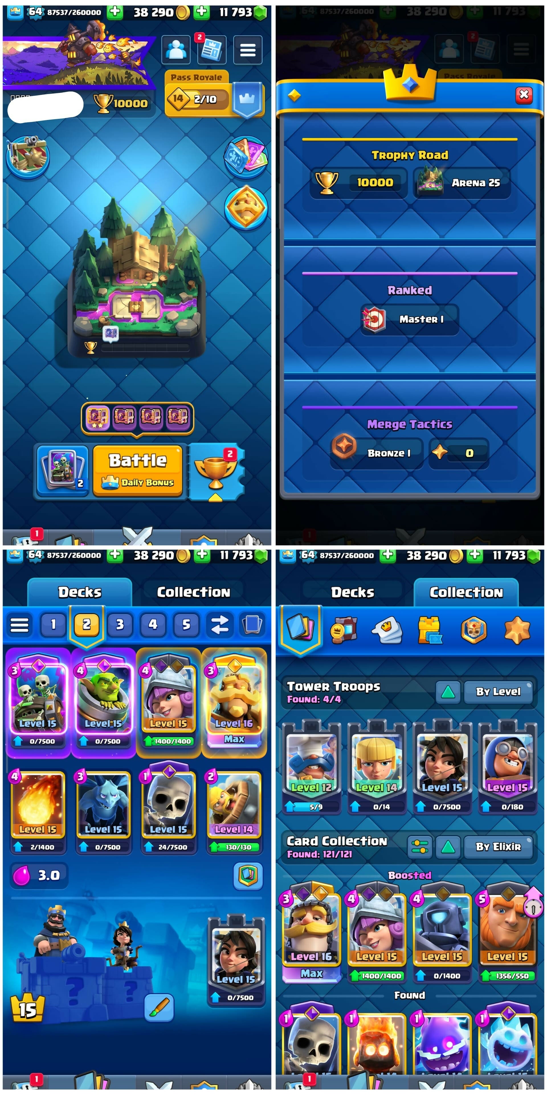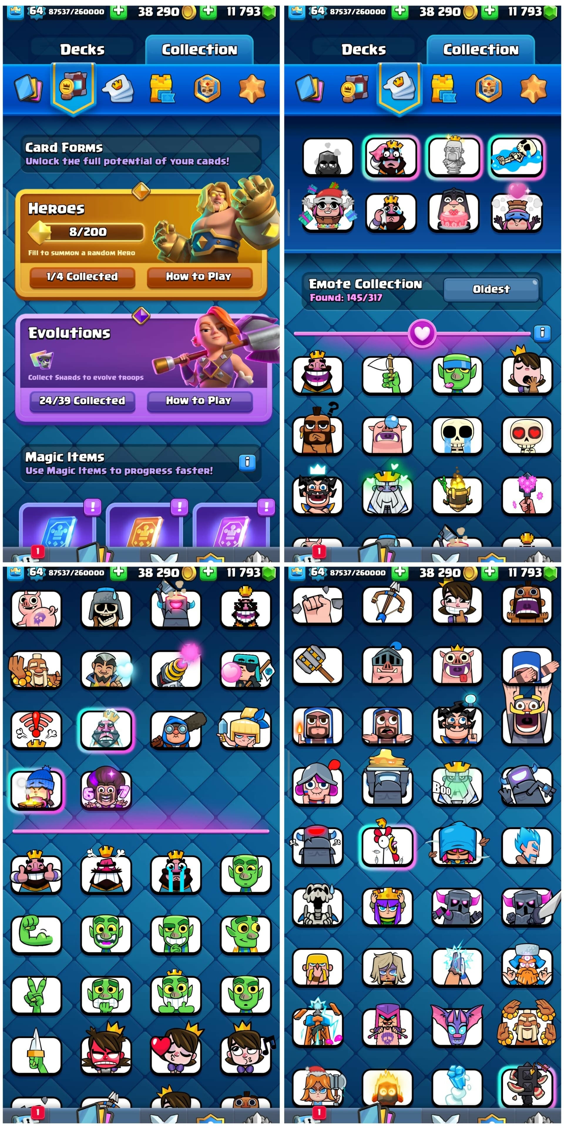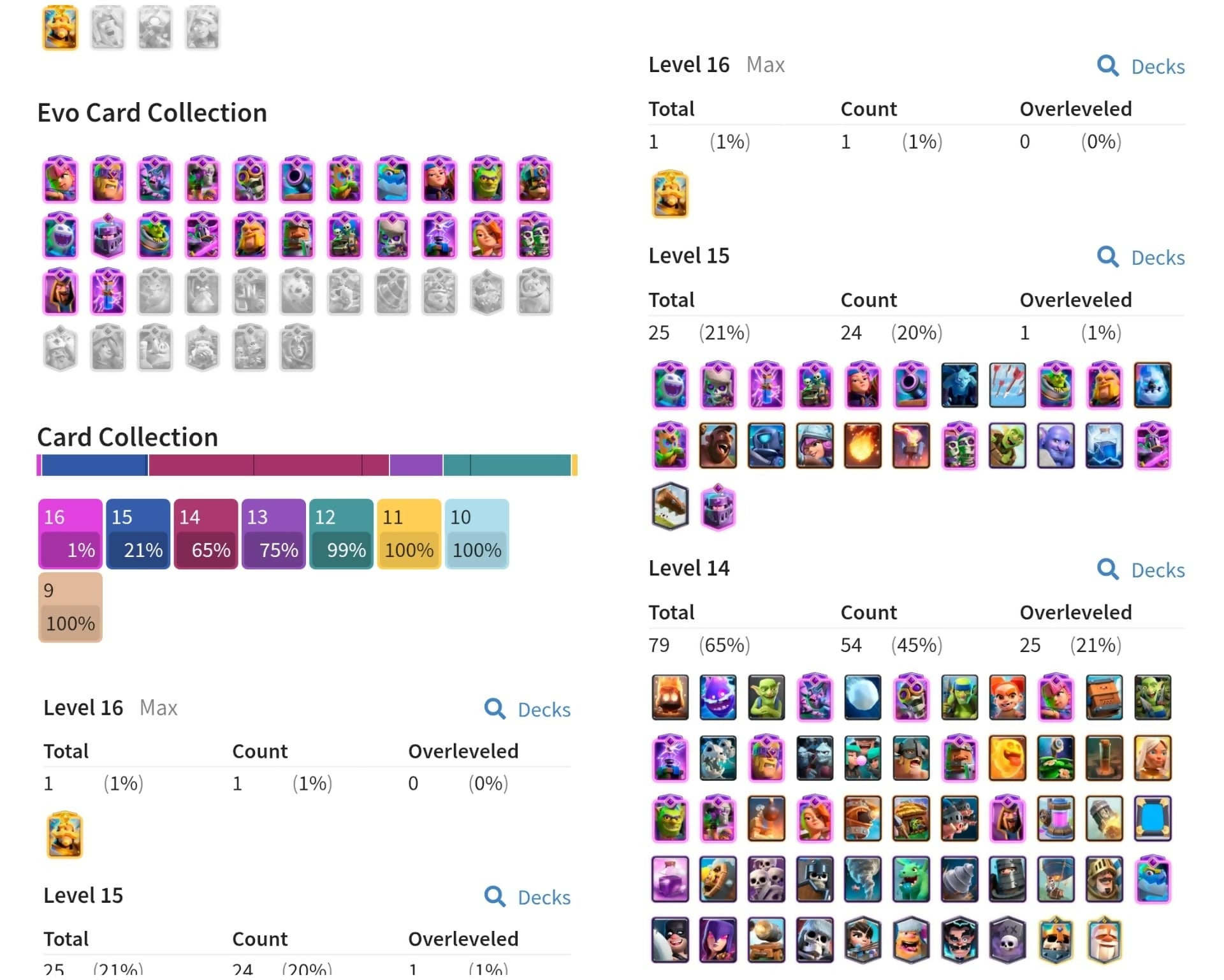 KT15 | LVL64 | 10000 TROPHY | ARENA 25 | 24 EVOLUTION CARDS | 25 LVL 15 CARDS | 79 LVL 14 CARDS | 145 EMOTES | INSTANT DELIVERY