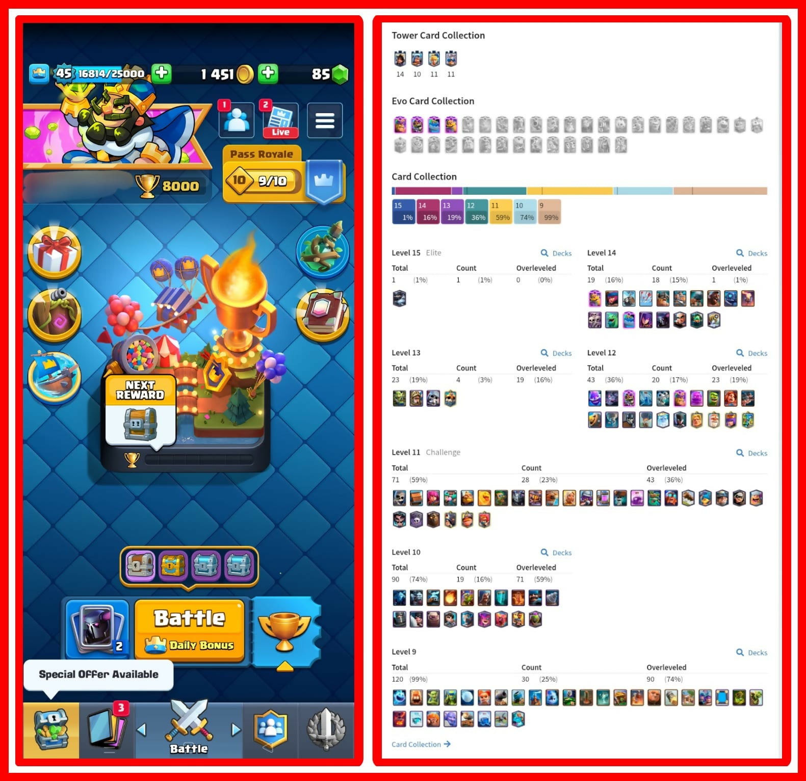 LEVEL 45 ?? 8000 TROPHIES ? ARENA LEVEL 21 ❤ KT LEVEL 14 ☠ 4 EVOLUTION CARDS ? 1 ELITE CARDS ? 19 MAX CARDS ☠? NAME CHANGE 500 GEMS ?☠ CHEAP PRICE ? INSTANT DELIVERY ☑? ANDROID & IOS ☑?