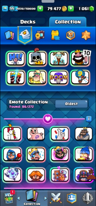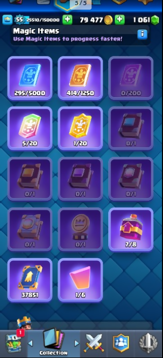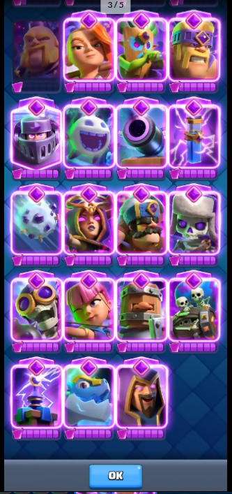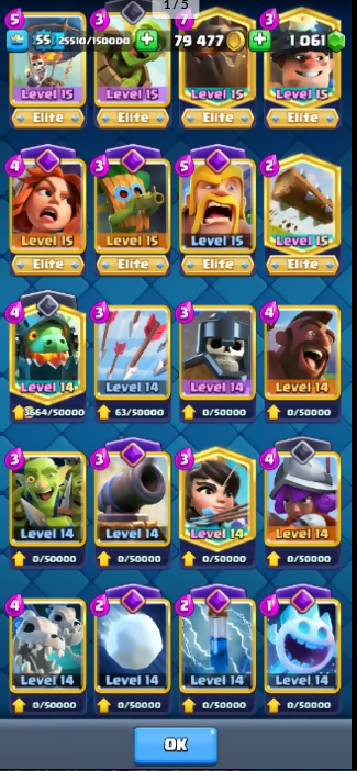 Level 55 ⚡️ Kt 15 ⚡️ 8 cards elite ⚡️ 17 cards level 14 ⚡️ +9000 trophies ⚡️ 18 evolution ⚡️ 86 emote ⚡️ 13 tower skin ⚡️ Magical items good ⚡️ Cheap price ?