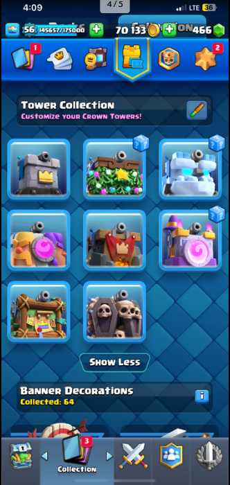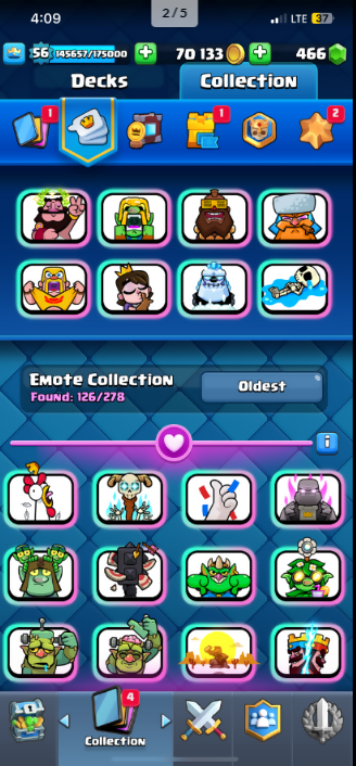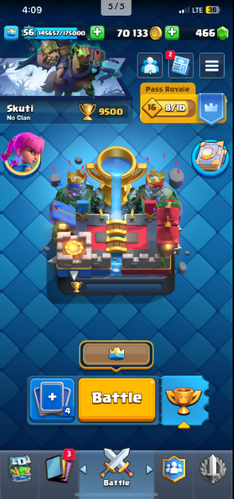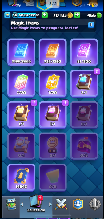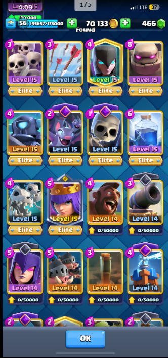 Level 56 ⚡️ Kt 15 ⚡️ 10 cards elite ⚡️ 18 cards level 14 ⚡️ 9500 trophies ⚡️ 126 rare emote ⚡️ 8 tower skin ⚡️ Magical items full ⚡️ Very cheap price ?