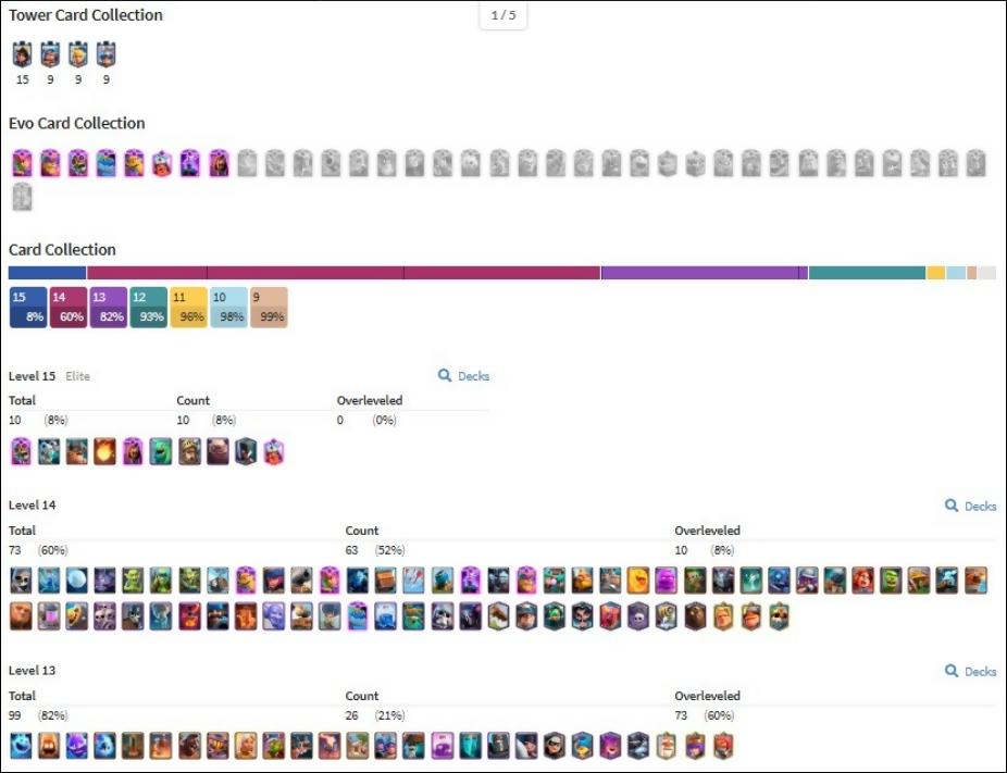 LVL 59➤(KT 15)➤CRL 20-Win 2023 Badge➤106 Max Cards➤18 Elites➤88 LVL 14➤10 Evos➤CC & 7y Badge➤135 Emotes & 31 Tower Skins➤Instant Delivery