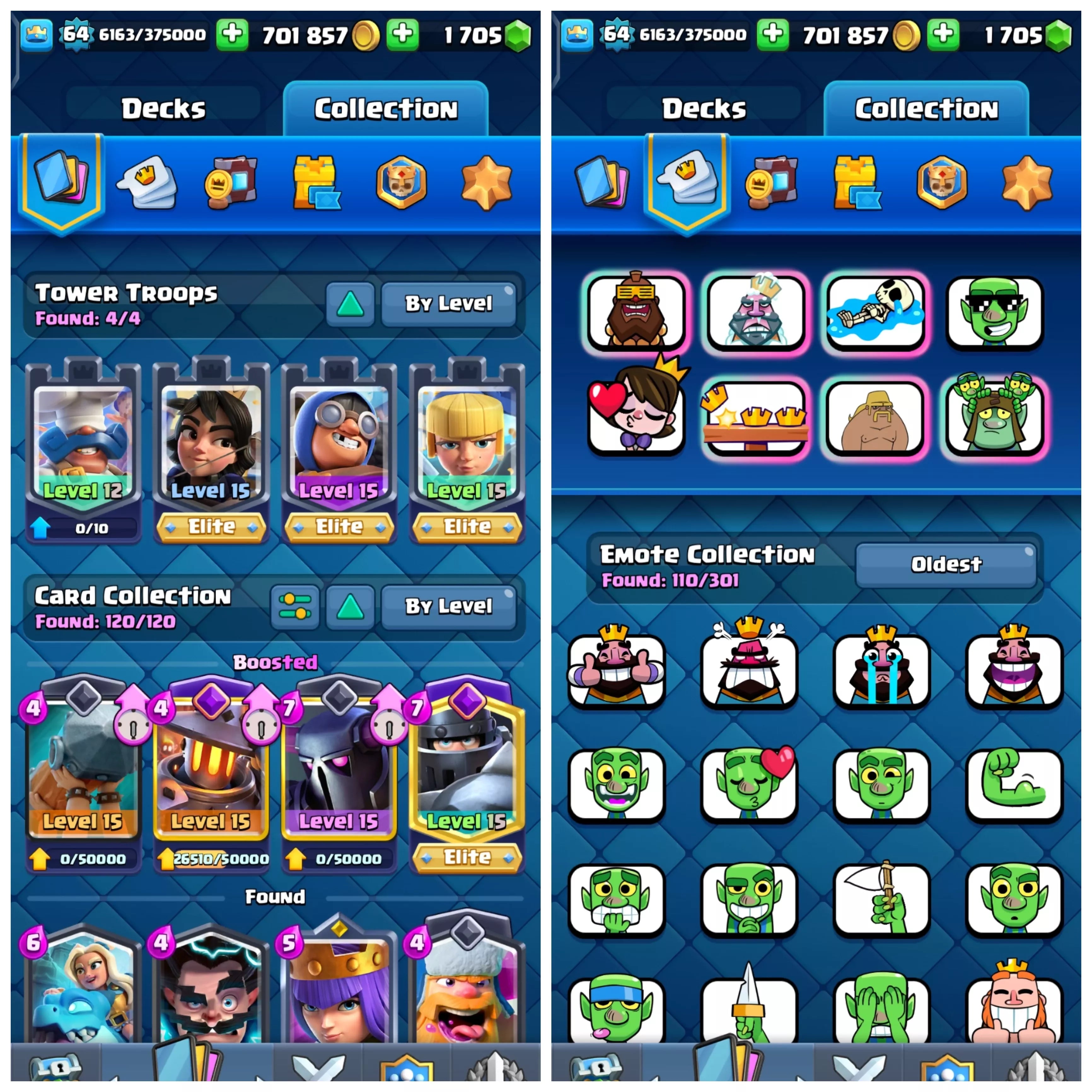 LVL 64 ⸱ KT15 ? 9 YEAR OLD ?19 EVO'S, 41 ELITE, 109 MAXED CARDS ? 12K CUPS ❤️? ALL CARDS COLLECTED ⚡110 EMOTES ? SAFE & WORTHY ?↔️ON YOUR MAIL.