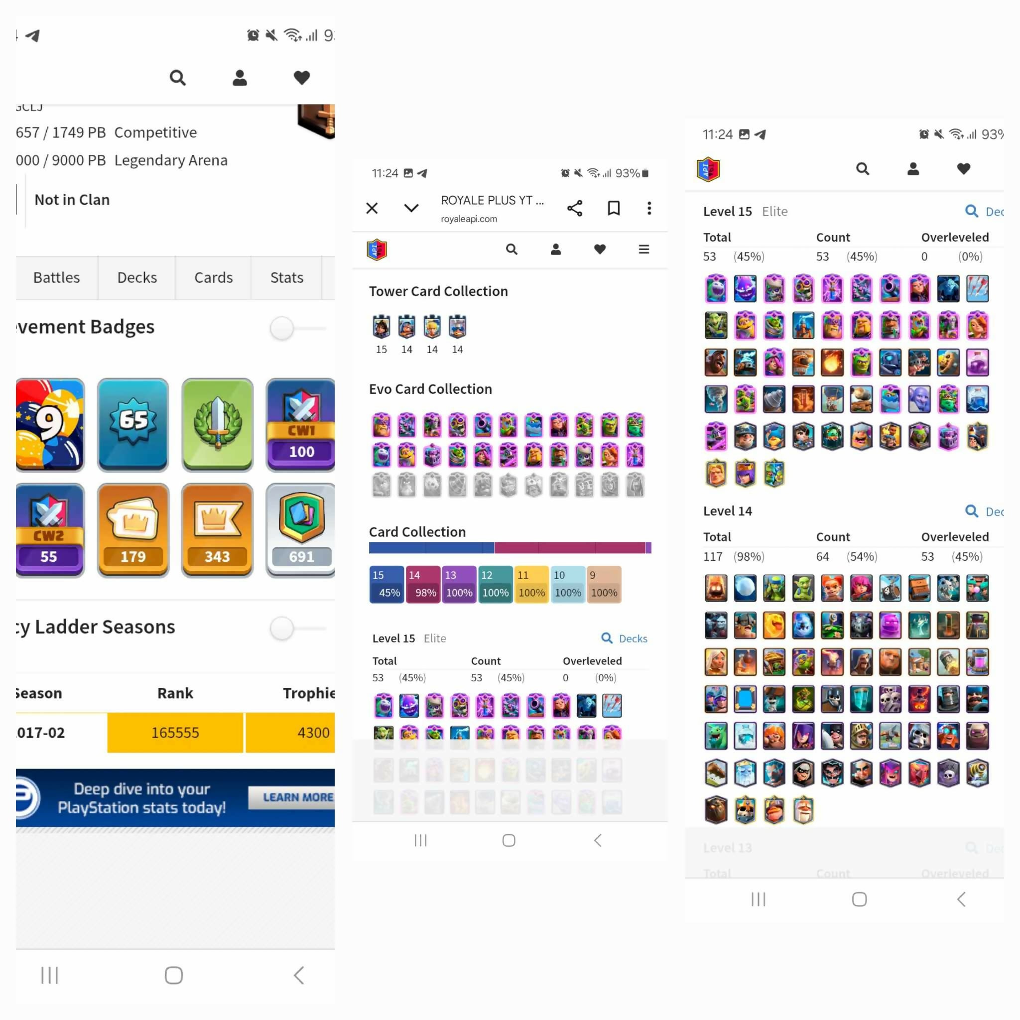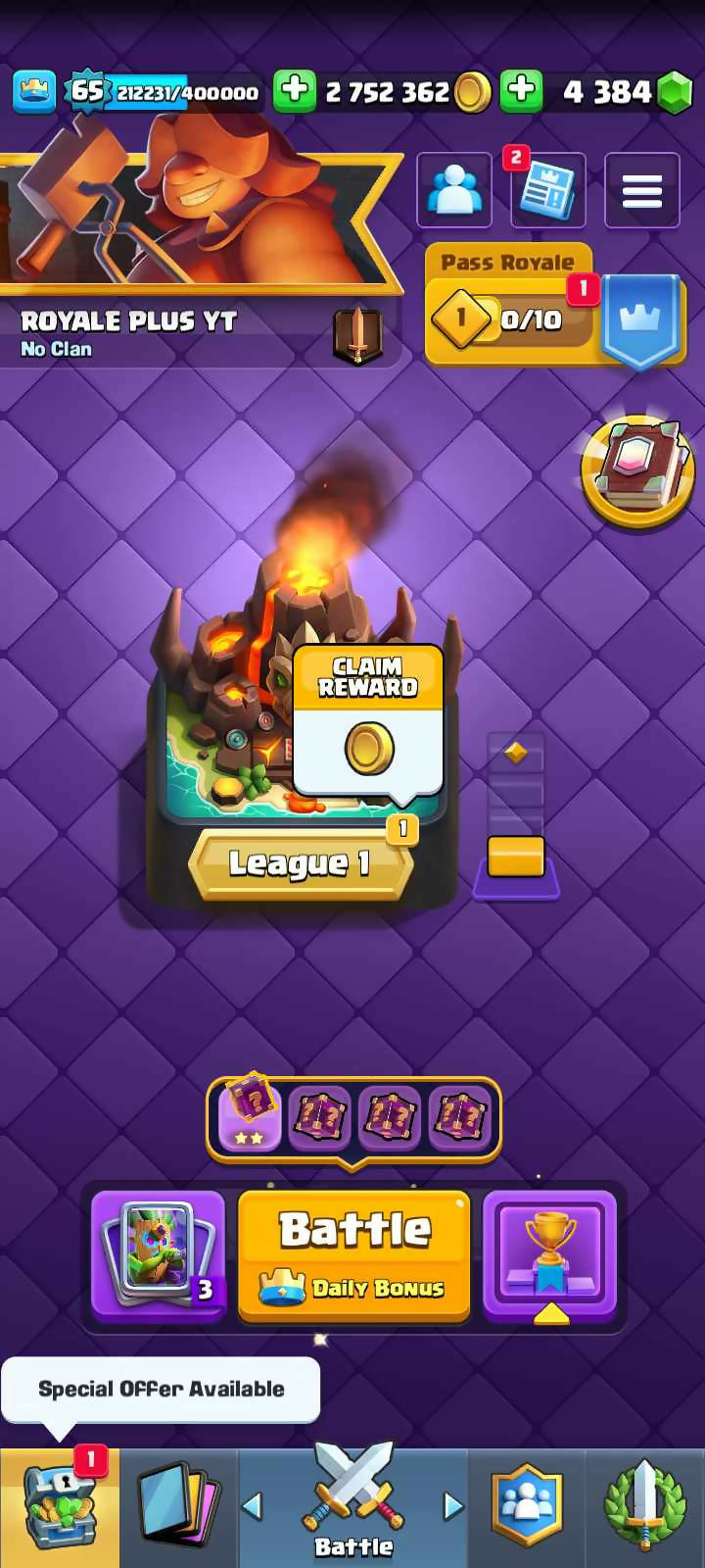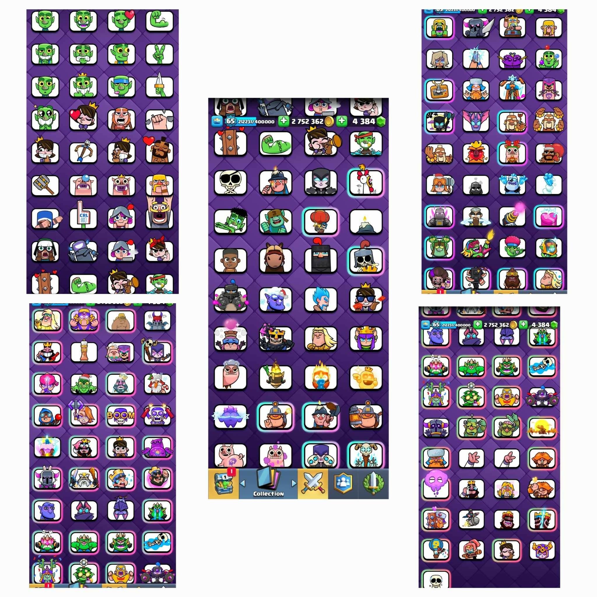 [ Mega Discounts ] ♦️ 118 Max Cards ♦️All Rare Emotes [ Trophy Kissing, Royal Ghost Gems, The Ultimate Champion, Liny Piggy ] ♦️ Level 65 ♦️ 22 Evo ♦️ 53 Elite ♦️4384 Gems ♦️ Best Achievement ♦️ 2.7M Gold ♦️ World Rare ♦️ safe guarantee