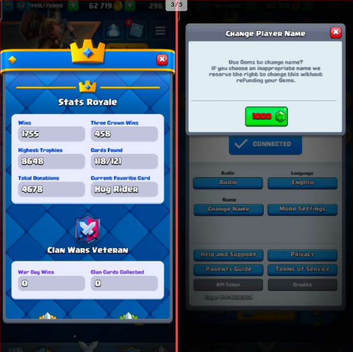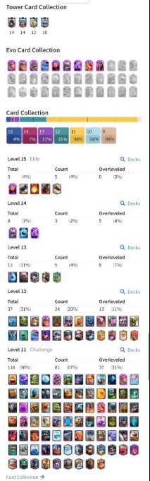8648 Trophies ๐ KT 14 : Level 52 ๐ฎ 118 Cards Unlock ๐ 9 Evolution ๐ *5 Level 15 ๐ฆ 3 Level 14 ๐๏ธ* 24 Level 12 ๐ 81 Level 11 โซ 47 Emotes ๐ 4 Years Old
