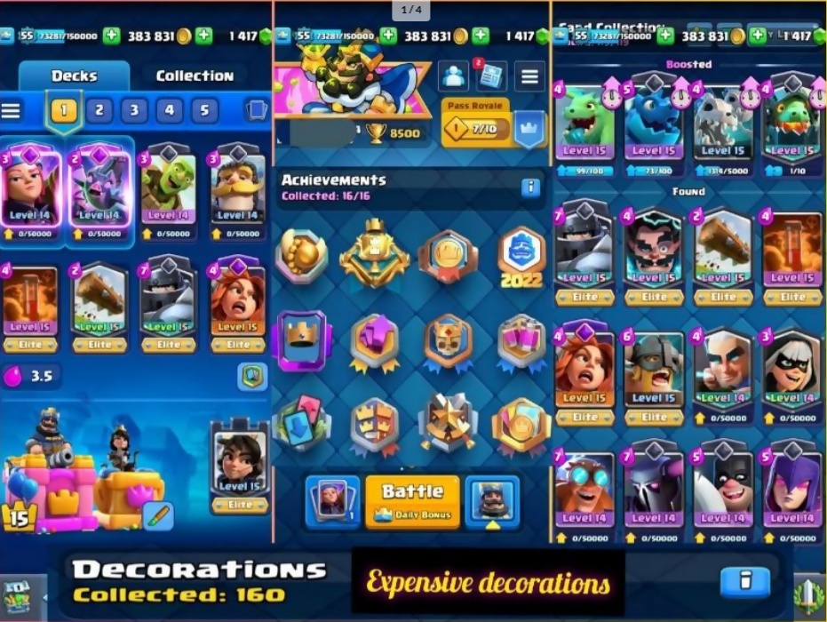 Rare CR MAX KT➤160 Decorations & 177 Frames➤& Brawl Stars 34K➤41 Max Cards (11 LV15),Rarest CRL2022 Badge➤89 Brawlers, 15 Hypercharges➤InstaNT dELIVERY