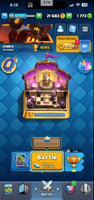 ULTIMATE OFFER➤110 MAX CARDS➤19 EVO CARDS➤45 ELITE CARDS➤12155 TROPHIES➤SEASONAL ARENA 3➤XP LVL 64➤KT 15➤149 RARE EMOTES➤120 CARDS➤Instant Delivery