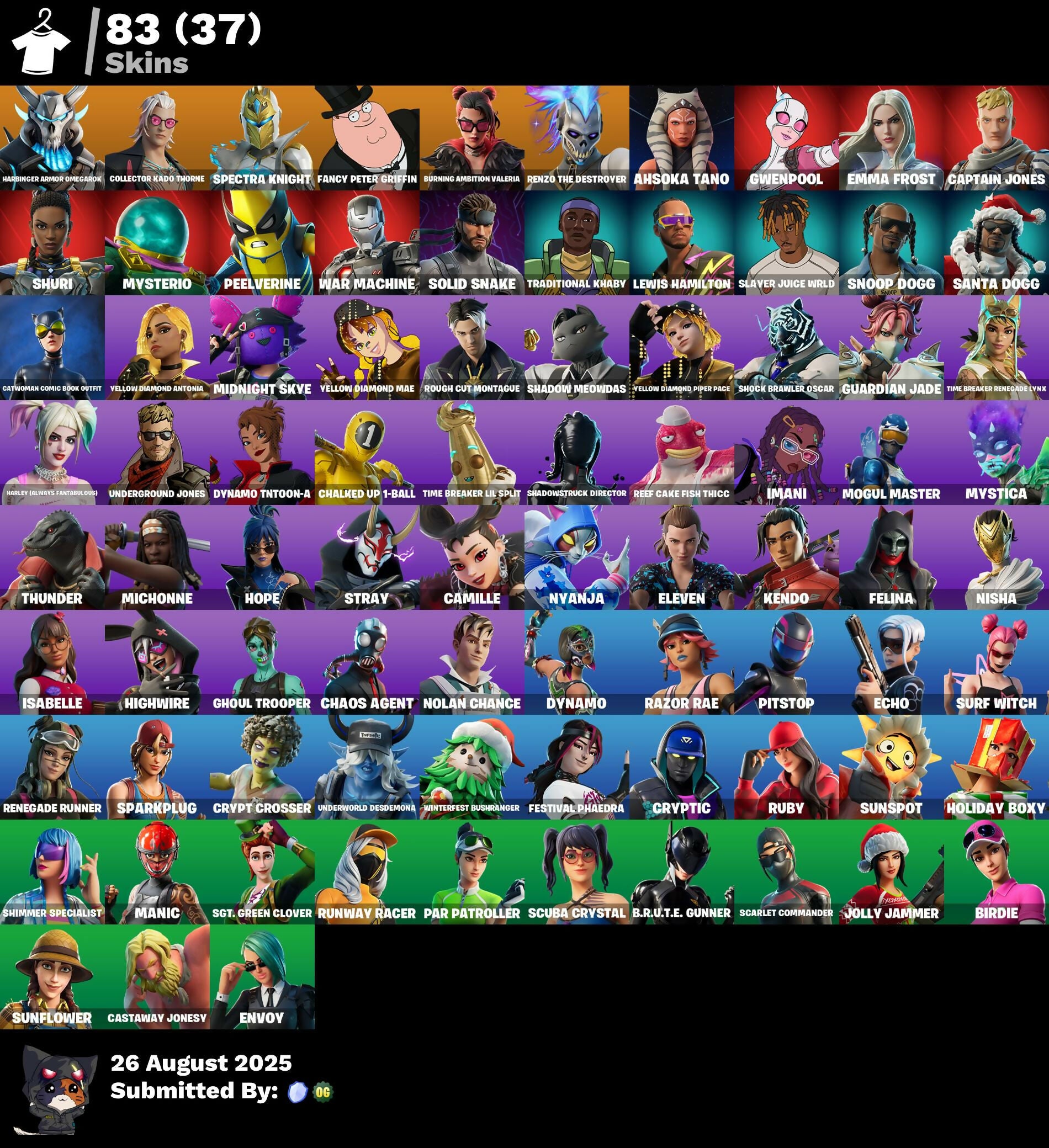 ✅83 TOP SKINS✅ [PC/PSN/XBOX] ✅ GHOUL TROOPER ✅ SOLID SNAKE ✅ SHADOW MEOWDAS✅ SPECTRA KNIGHT ✅ FANCY PETER GRIFFIN ✅ BURNING AMBITION VALERIA