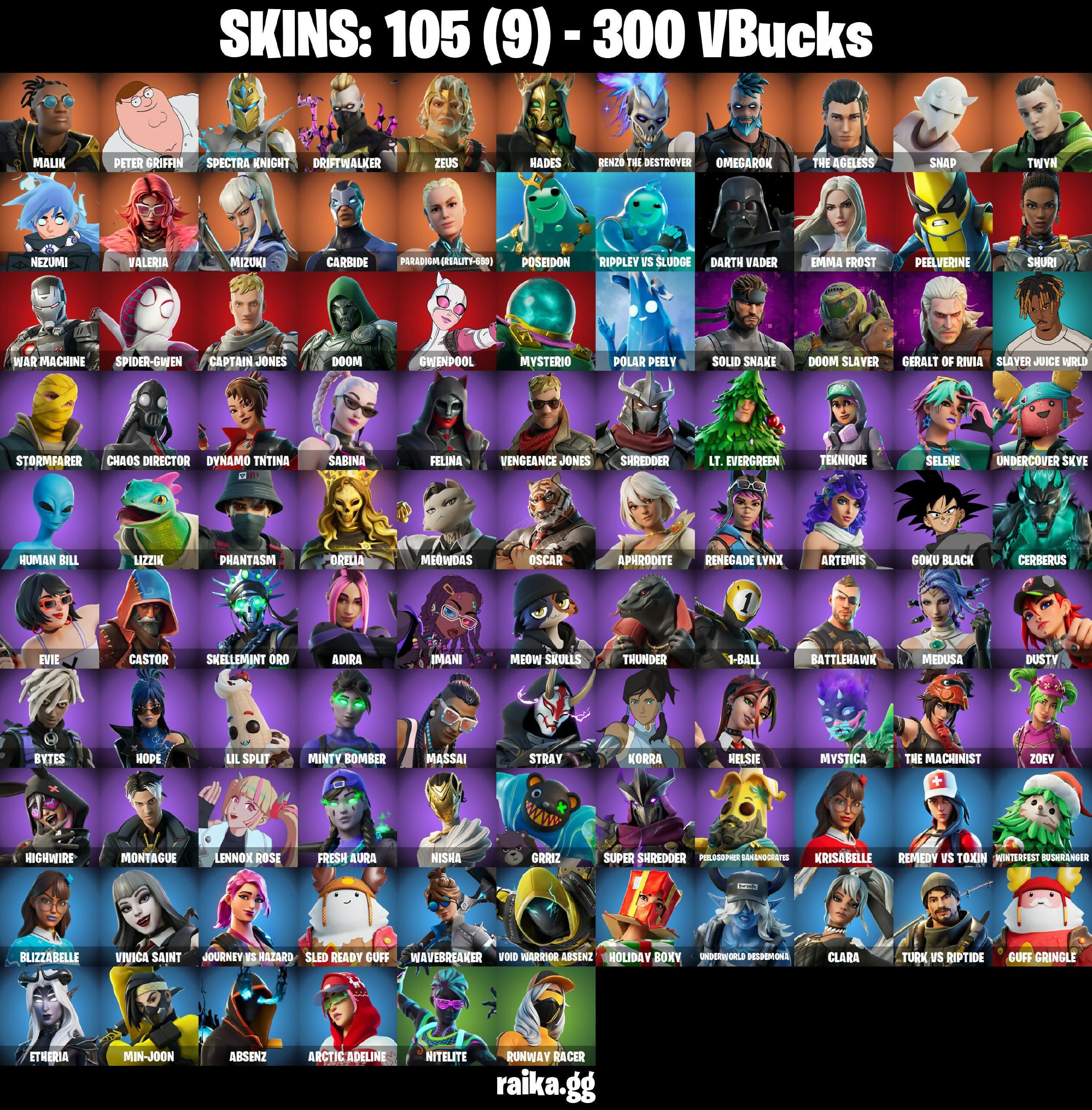🎆105 SKINS ⚡️PSN/XBOX/PC⚡️MALIK 👑 PETER GRIFFIN 👑 SPECTRA KNIGHT 👑 DRIFTWALKER 👑 ZEUS 👑 HADES 👑 RENZO THE DESTROYER 👑 OMEGAROK ⚡️ 300 VB 📧 MAIL CHANGEABLE #M89