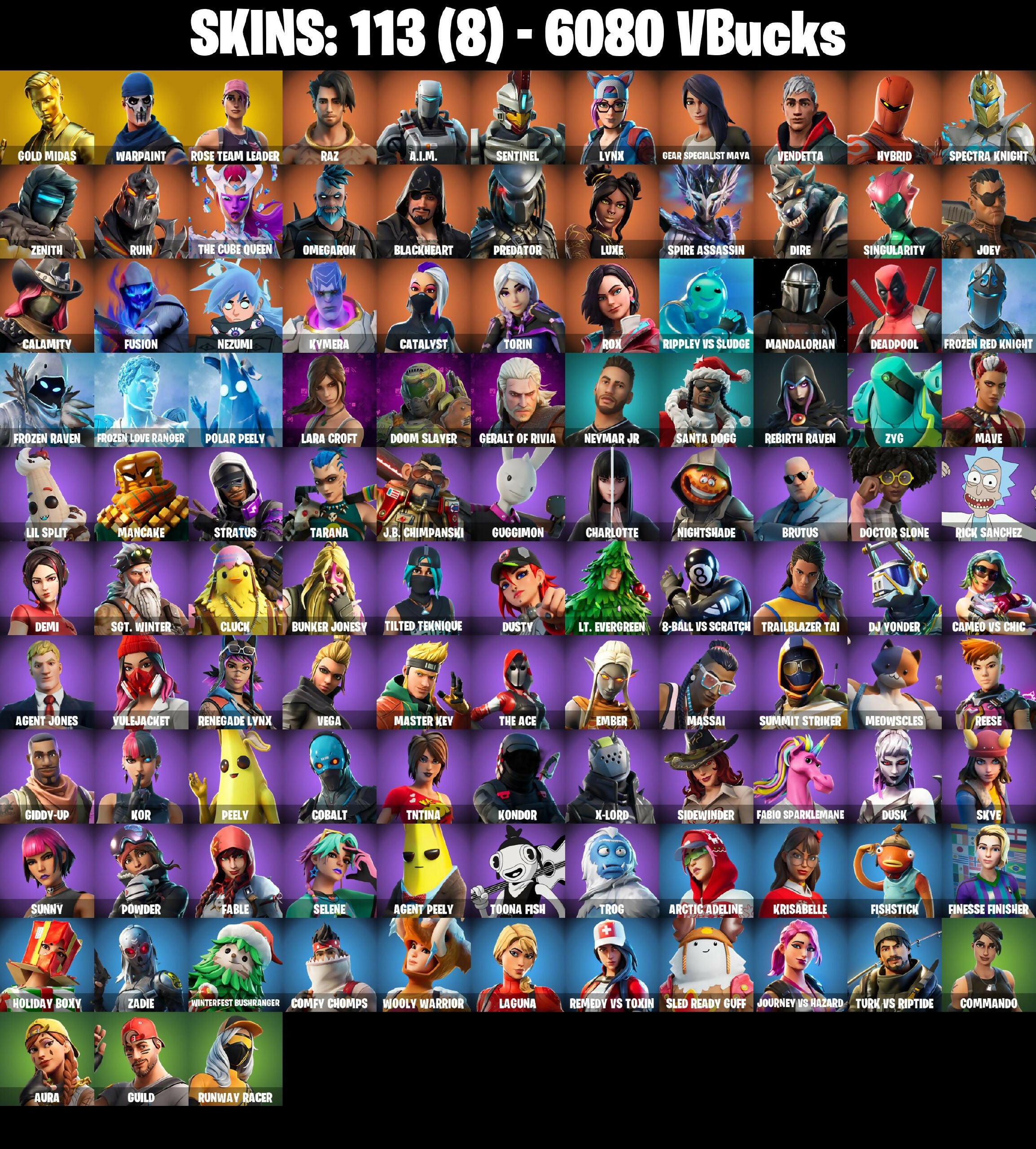🎆113 SKINS ⚡️PC⚡️ GOLD MIDAS 👑 RAZ 👑 A.I.M. 👑 SENTINEL 👑 LYNX 👑 GEAR SPECIALIST MAYA 👑 VENDETTA 👑 HYBRID 👑 SPECTRA KNIGHT 👑 ZENITH 👑 RUIN ⚡️ 6080 VB 📧 MAIL CHANGEABLE #M292