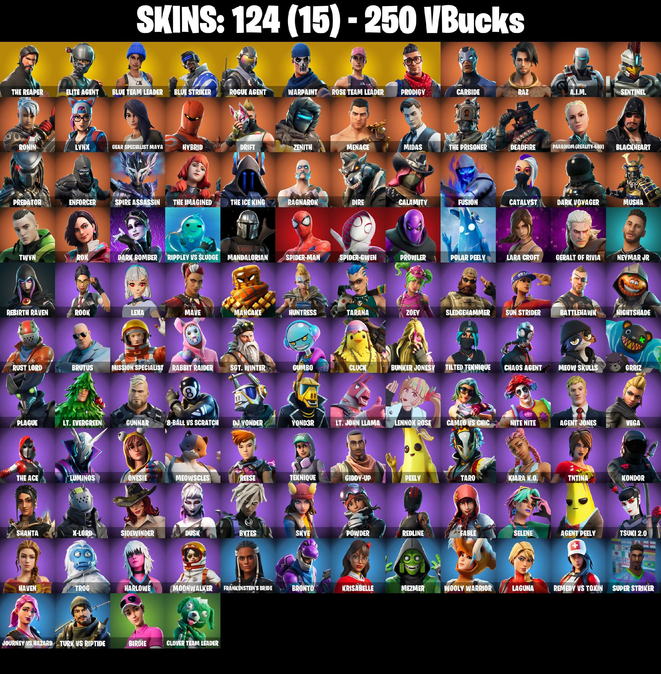 🎆124 SKINS ⚡️PC⚡️ THE REAPER 👑 ELITE AGENT 👑 BLUE TEAM LEADER 👑 BLUE STRIKER 👑 ROGUE AGENT 👑 PRODIGY 👑 CARBIDE 👑 RAZ 👑 A.I.M. 👑 SENTINEL ⚡️ 250 VB 📧 MAIL CHANGEABLE #M280