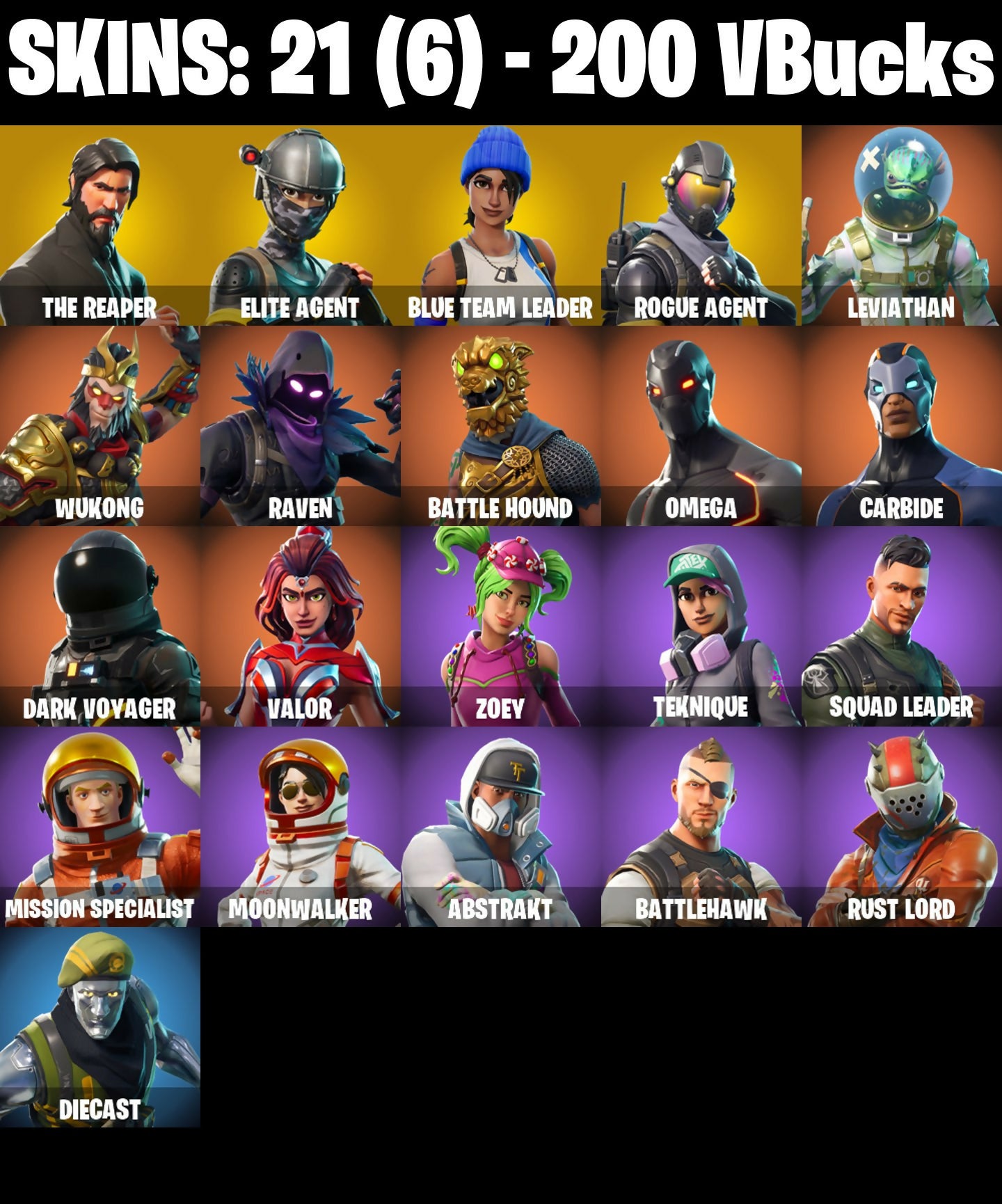 🎆21 SKINS ⚡️PC/XBOX⚡️ THE REAPER 👑 ELITE AGENT 👑 BLUE TEAM LEADER 👑 ROGUE AGENT 👑 LEVIATHAN 👑 WUKONG 👑 RAVEN 👑 BATTLE HOUND 👑 OMEGA ⚡️ 200 VB 📧 MAIL CHANGEABLE SOON #M559