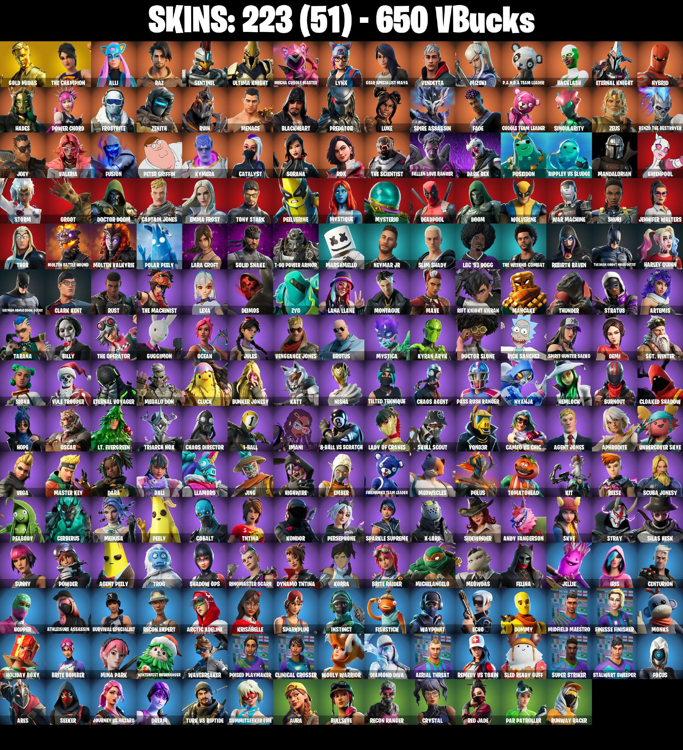 🎆223 SKINS ⚡️PC⚡️ GOLD MIDAS 👑 THE CHAMPION 👑 ALLI 👑 RAZ 👑 SENTINEL 👑 ULTIMA KNIGHT 👑 MECHA CUDDLE MASTER 👑 LYNX 👑 GEAR SPECIALIST MAYA ⚡️ 650 VB 📧 MAIL CHANGEABLE #M287